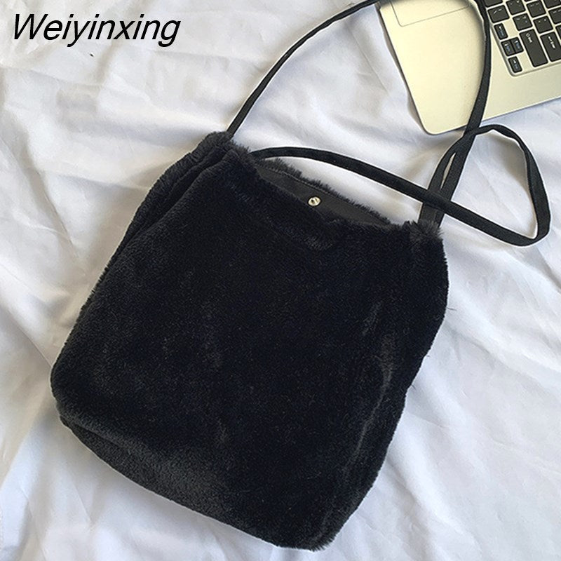 Weiyinxing Women's Shopper Bag Plush Tote Shoulder Bags For Women 2023 Fluffy Female Handbag Fur Ladies Hand Shoppers Bag Black Sac A Main