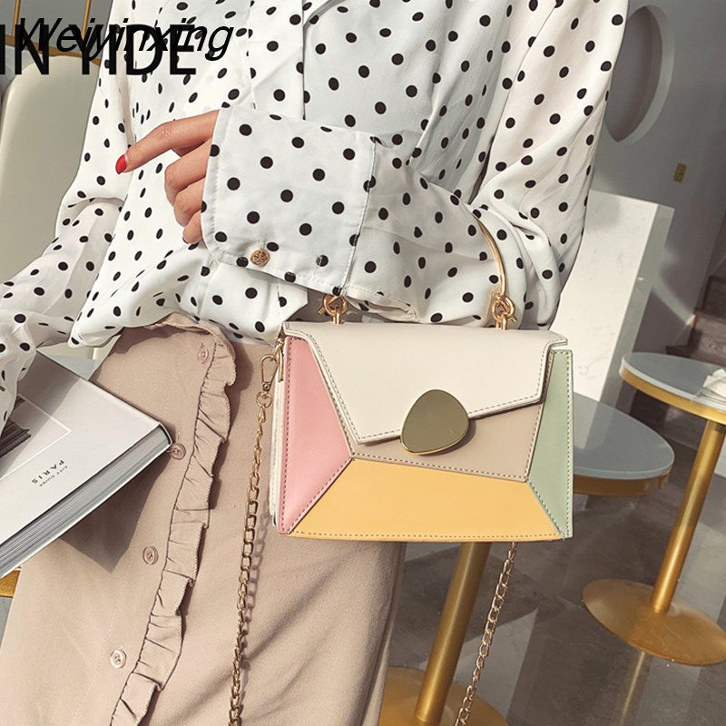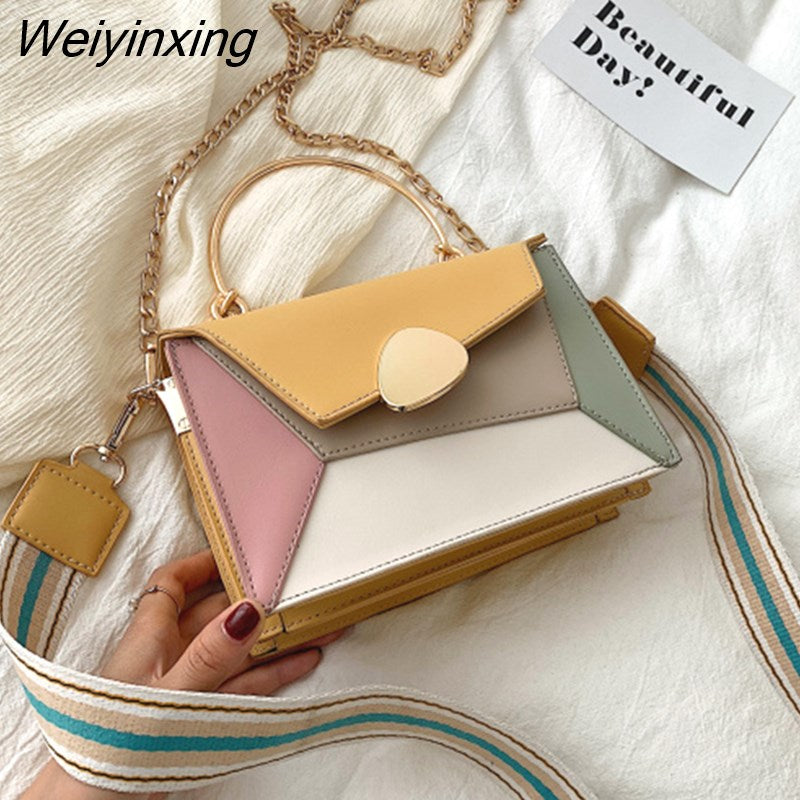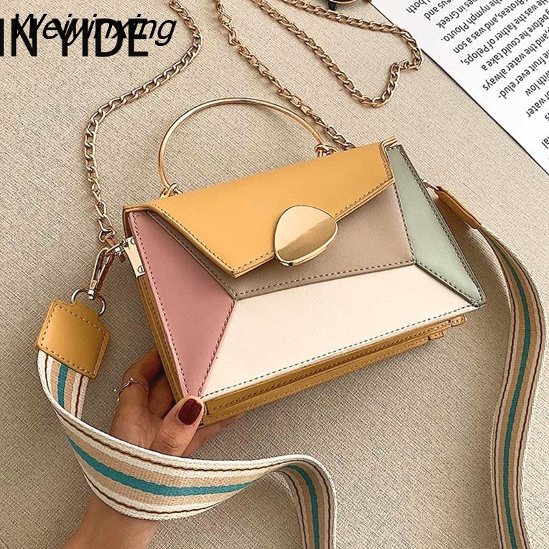 Weiyinxing YIDE New 2023 Fashion Contrast PU Leather Designer Shoulder Messenger Bag Metal Handle Strap Casual Portable Messenger Bag