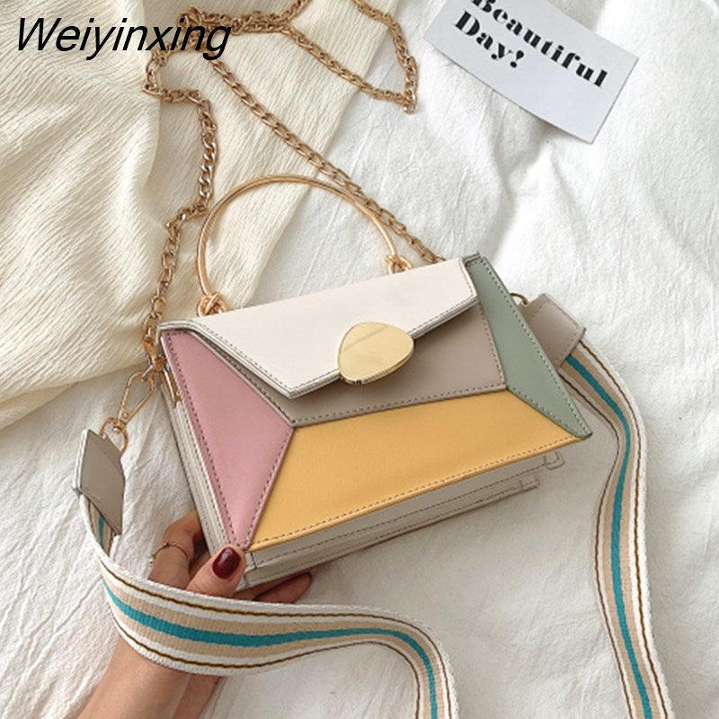 Weiyinxing YIDE New 2023 Fashion Contrast PU Leather Designer Shoulder Messenger Bag Metal Handle Strap Casual Portable Messenger Bag