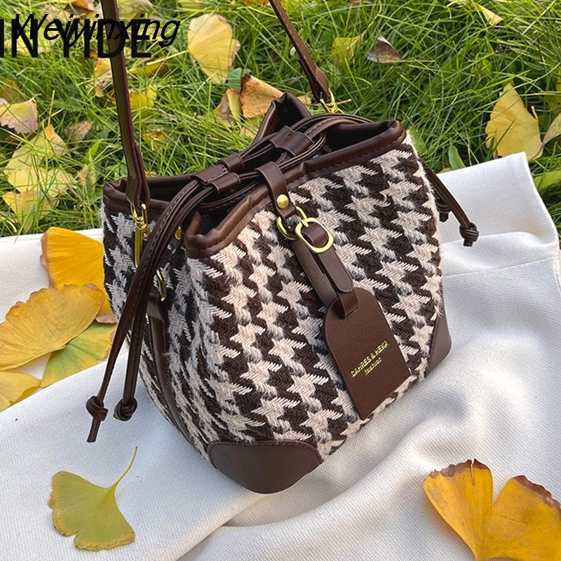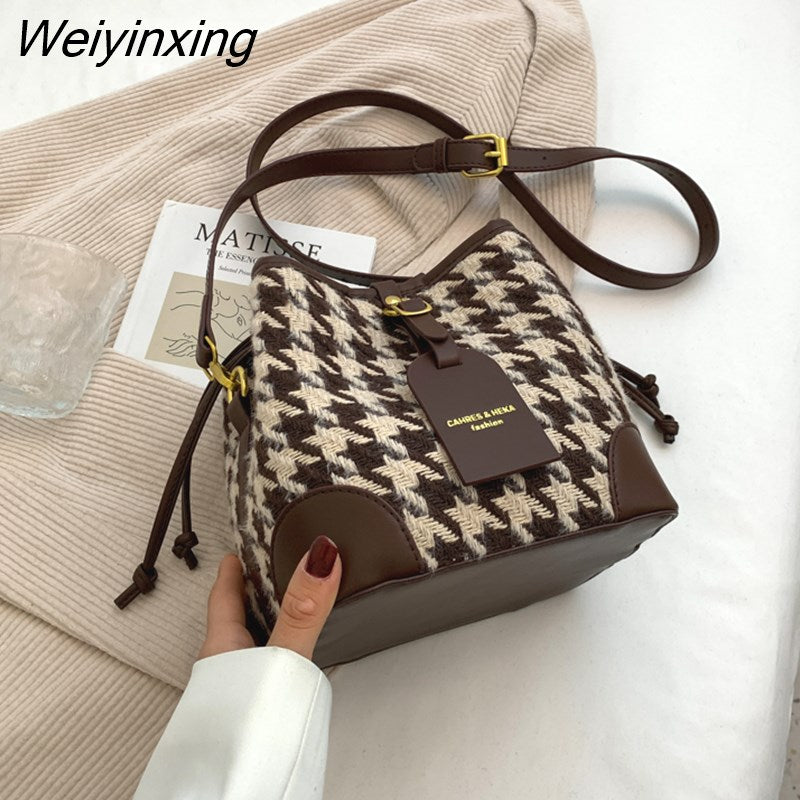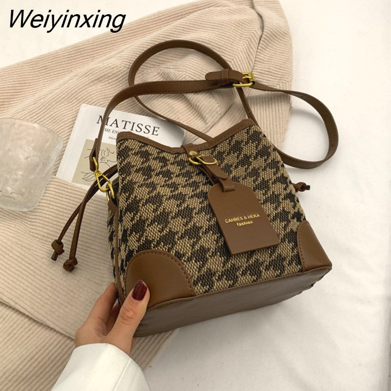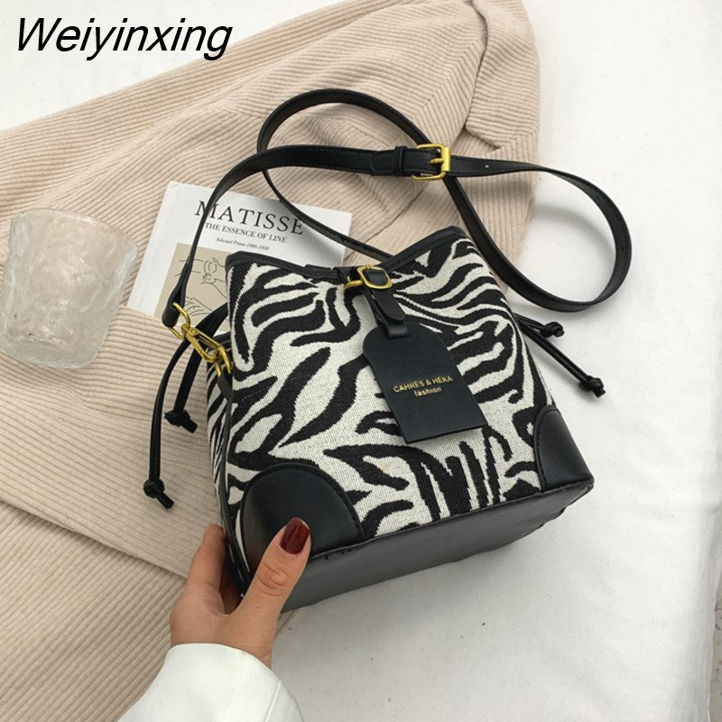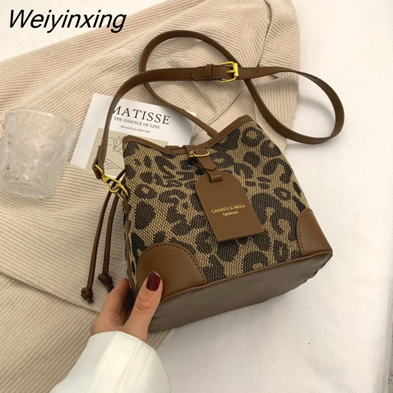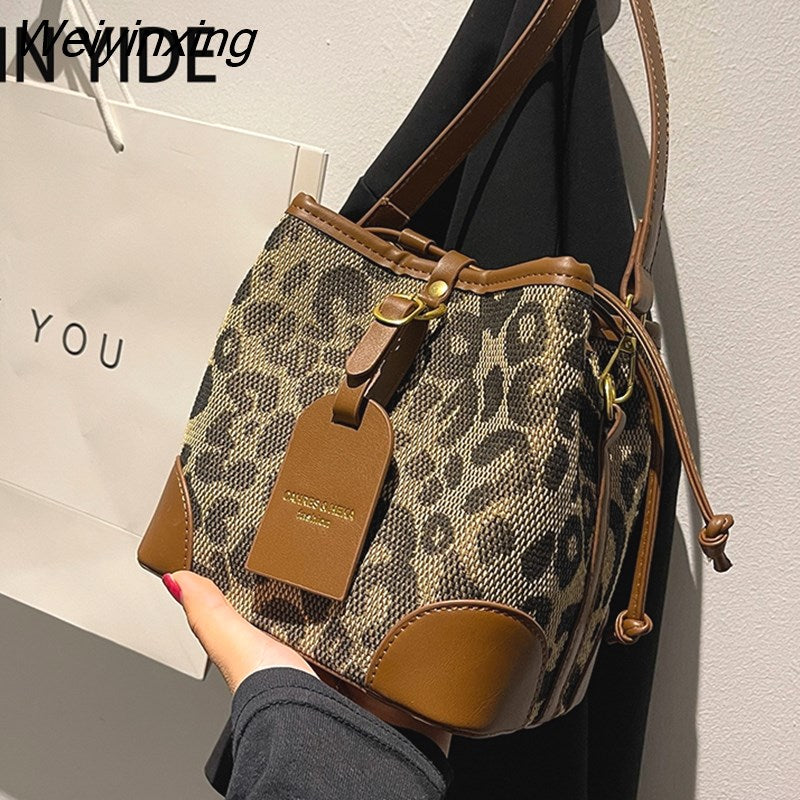 Weiyinxing YIDE New Retro Leopard PU Leather Bucket bag Crossbody Bags Handbag Women Shoulder Purses Female Luxury Brand 2023 Fashion