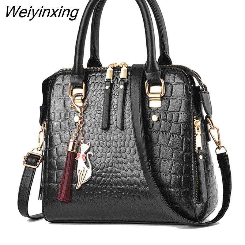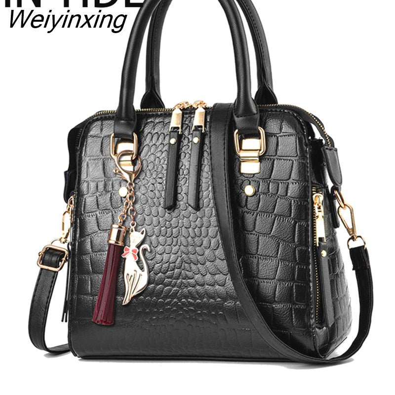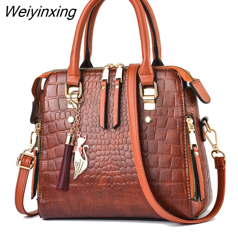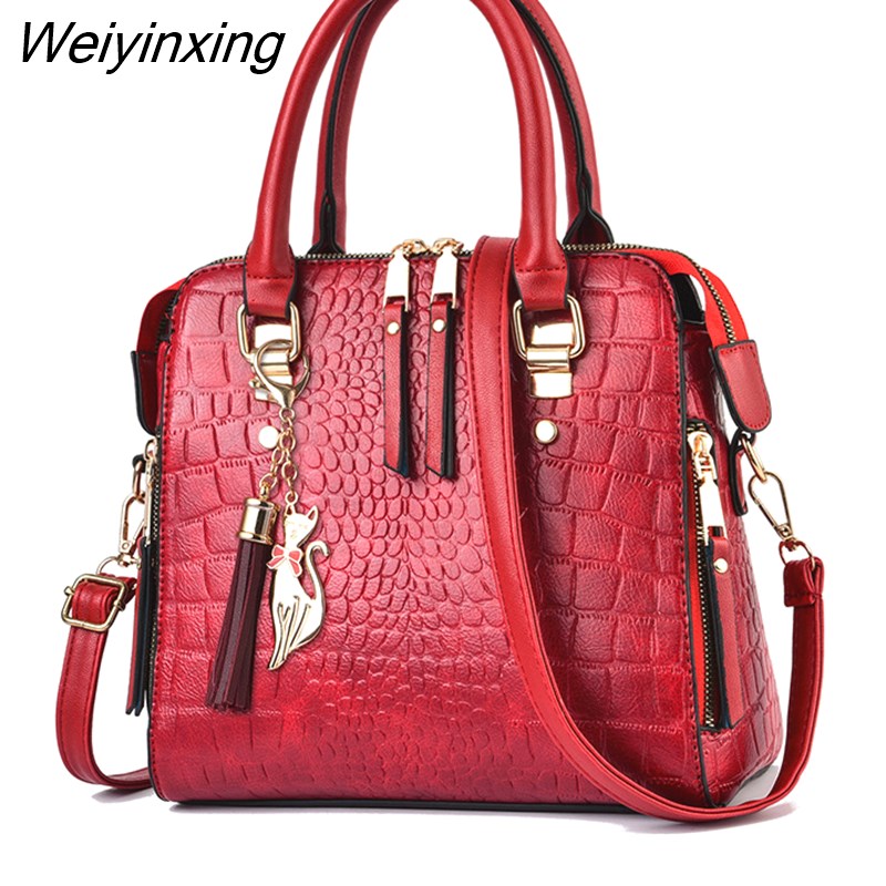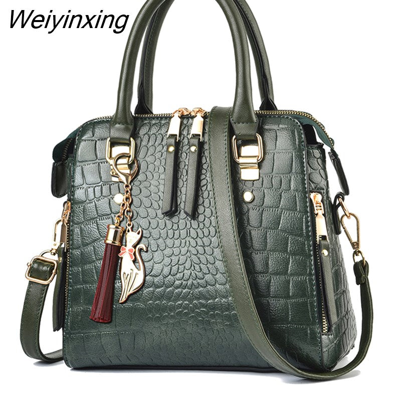 Weiyinxing YIDE Retro Alligator Women Luxury PU Leather Handbag Female Tassel Designer Shoulder Messenger Bag Casual Ladies Tote Bolsas