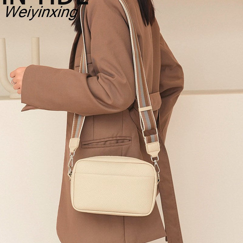 Weiyinxing YIDE Solid Classic Purses and Handbags Women Wide Fabric Strap Crossbody Bag Ladies Luxury Daily Use Zipper Shoulder Bags