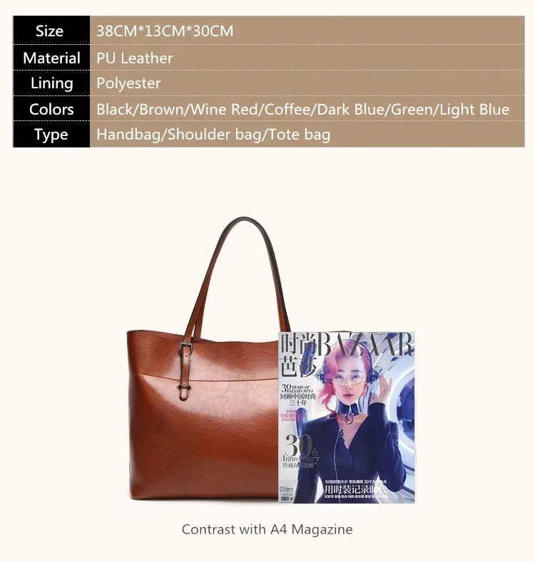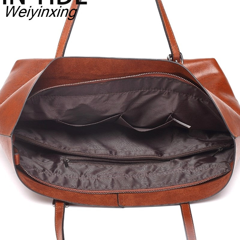 Weiyinxing YIDE Women Shoulder Bag Fashion Women Handbags Oil Wax Leather Large Capacity Tote Bag Casual Pu Leather women Messenger bag