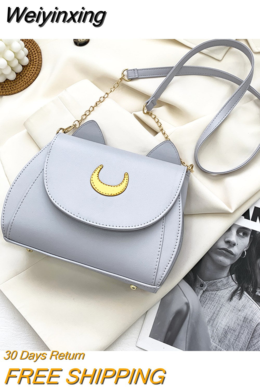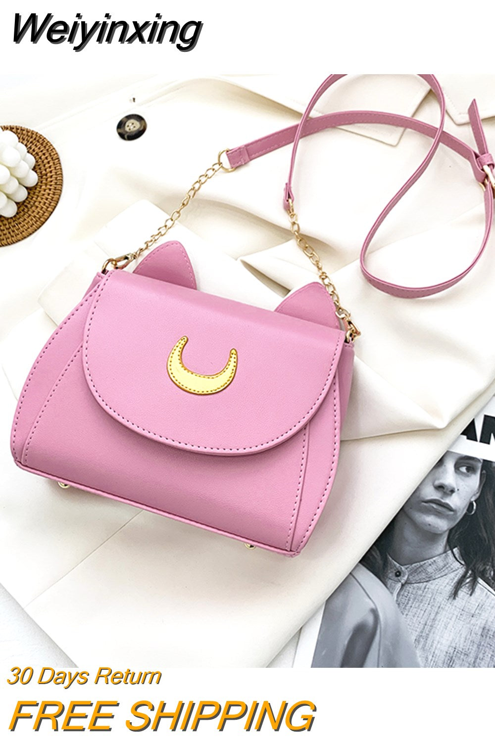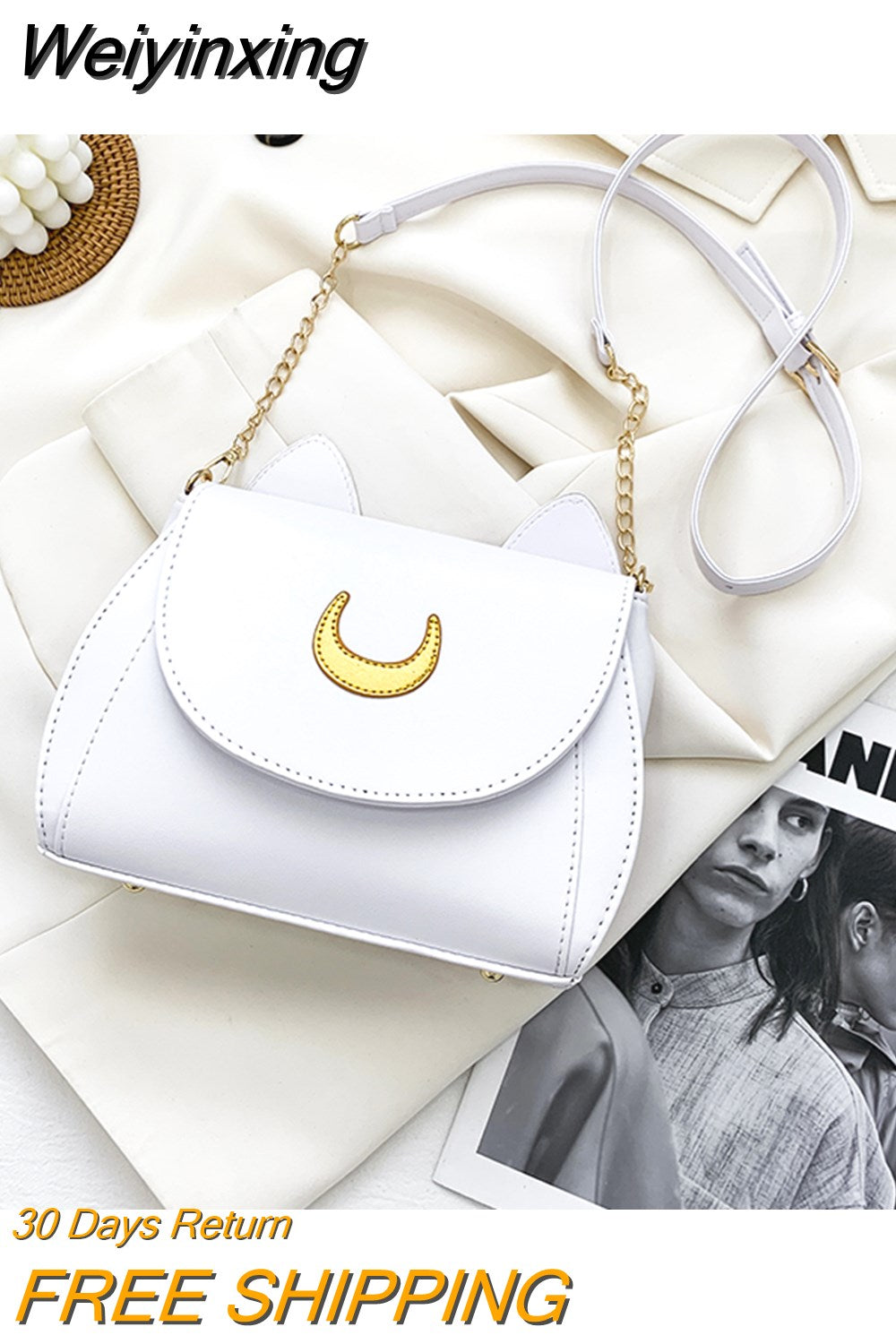 Weiyinxing Autumn Sailor Moon Ladies Handbag Cat Shape Chain Women Shoulder Bag PU Leather Bag Women Tote Bag Crossbody Leather Wallet