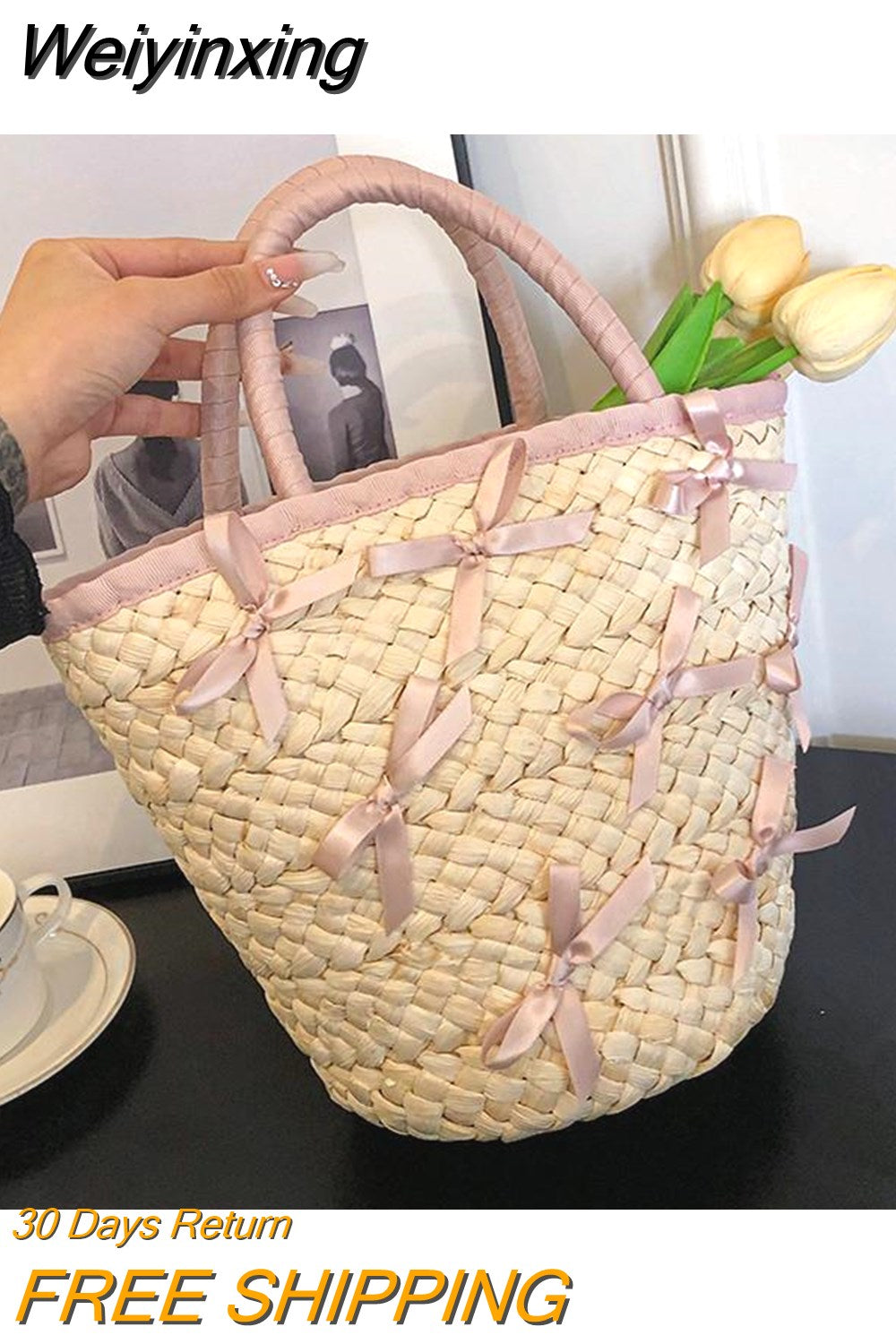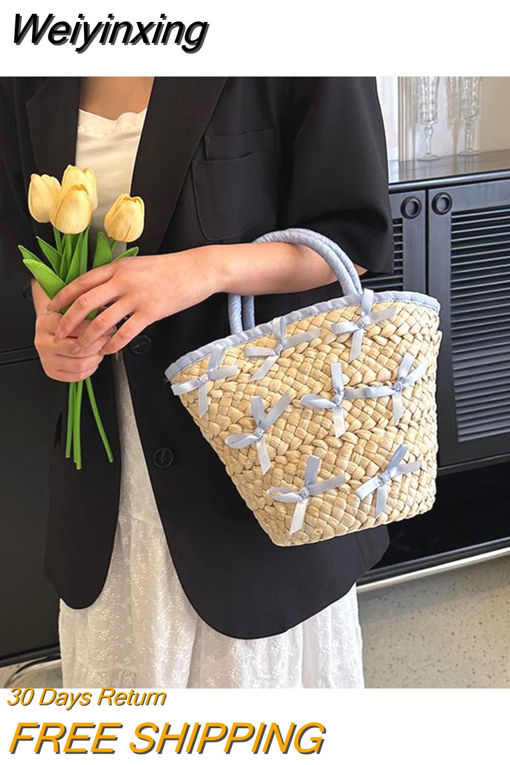Weiyinxing Capacity Straw Woven Bucket Handbag For Women Cute Luxury Design New Purse Summer Holiday 2023 Casual Trendy Ladies Wallet