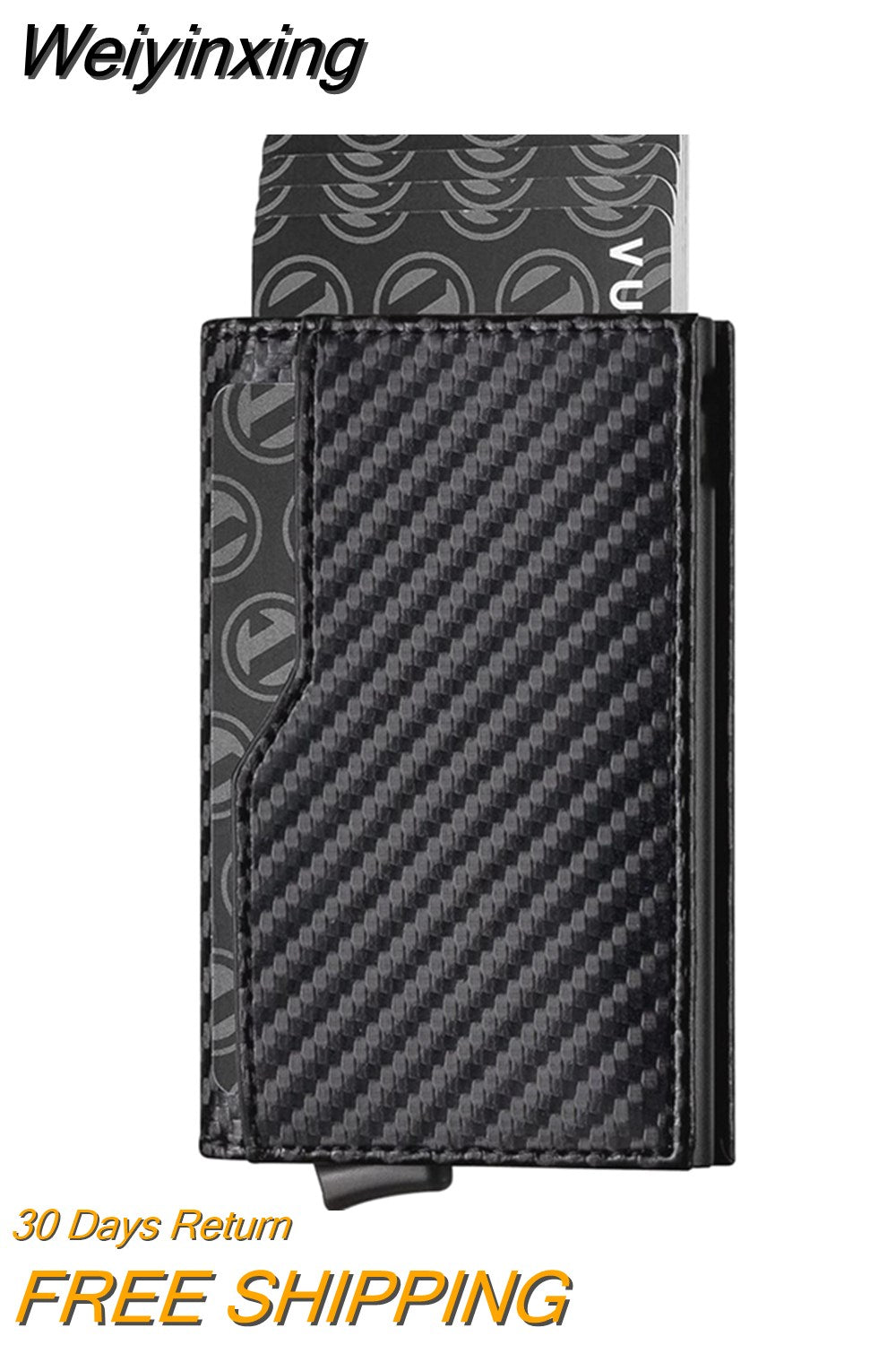 Weiyinxing Card Holder with Double ID Window Leather Passcase Wallet RFID Blocking Automatic Pop Up Card Wallet for Cards & Notes