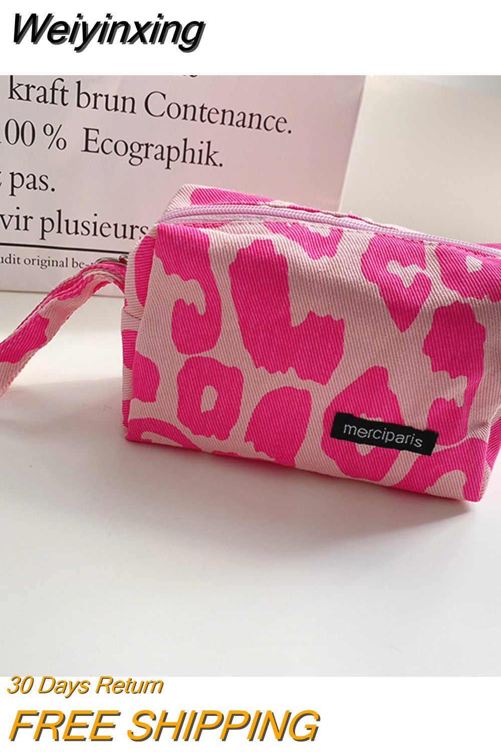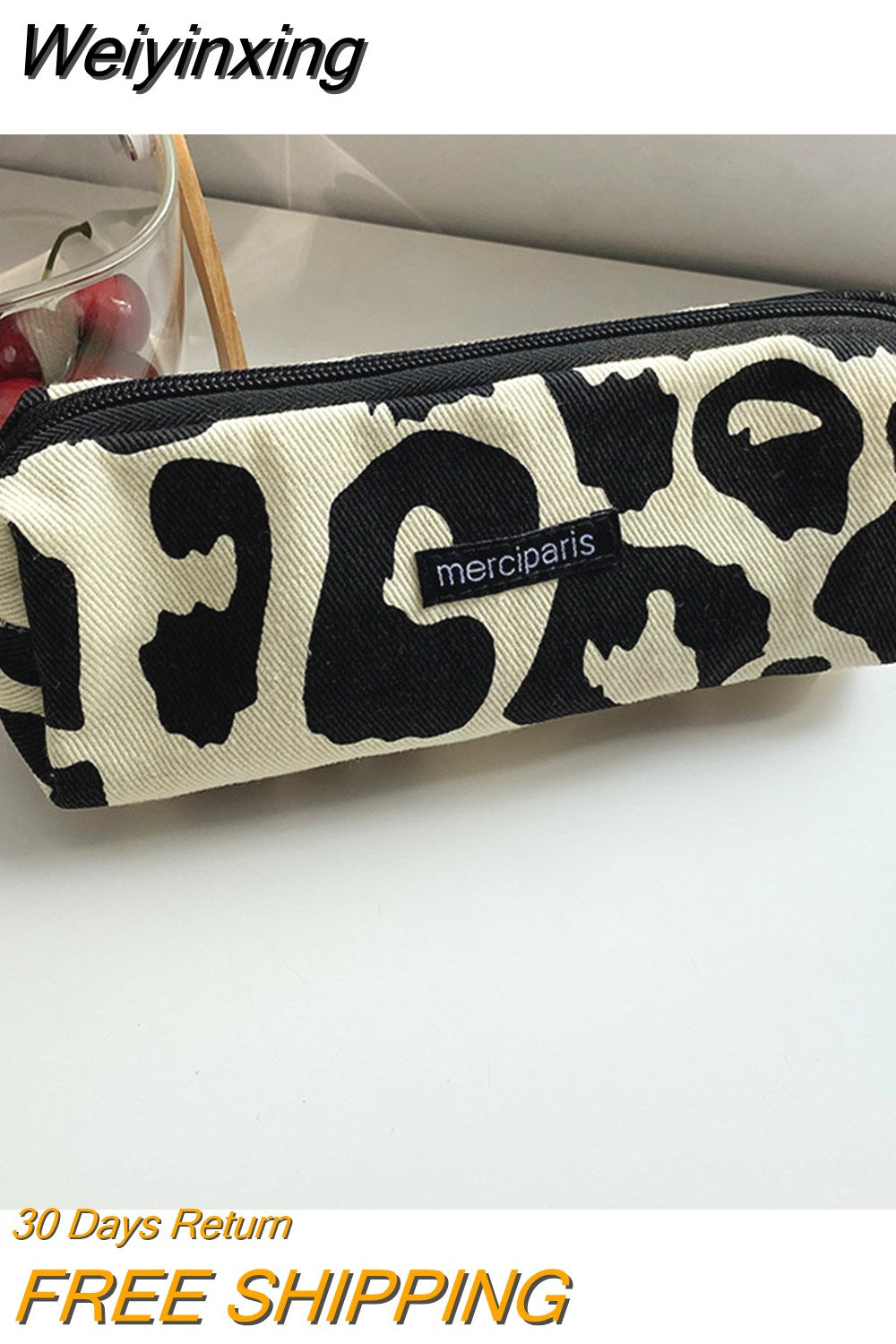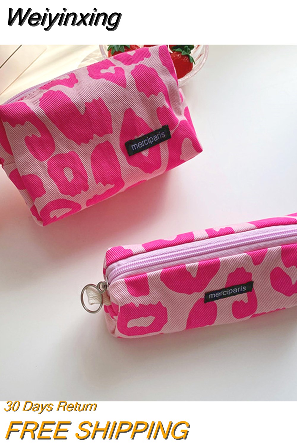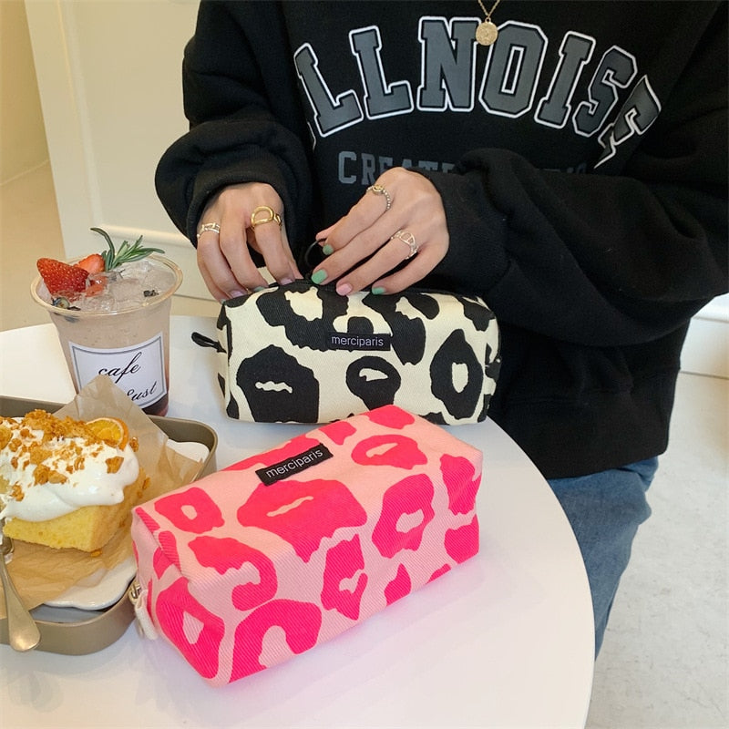 Weiyinxing Corduroy Women's Cosmetic Bag Simple Plaid Girls Canvas Pencil Case Leopard Print Ladies Lipstick Storage Bag Small Wallet