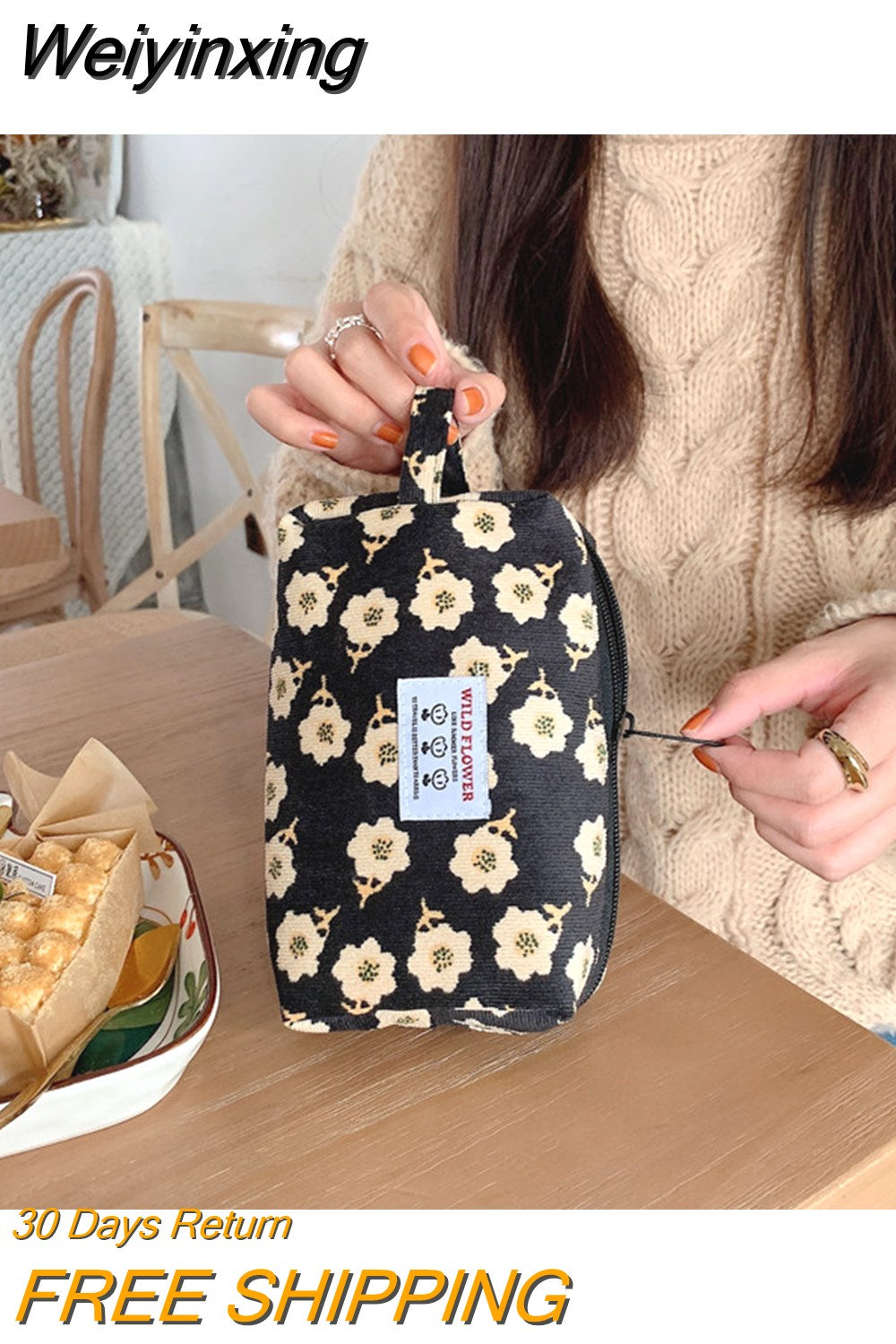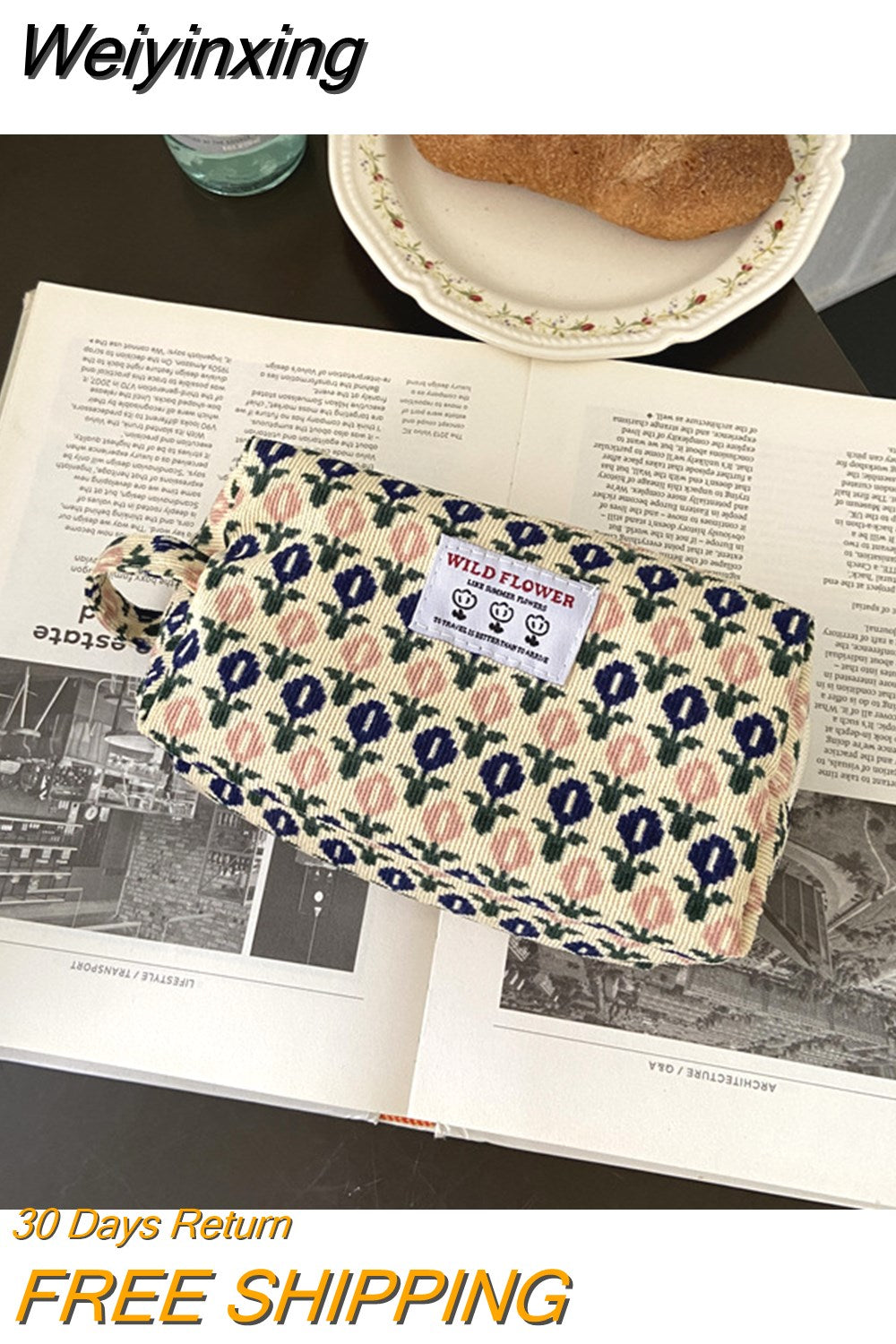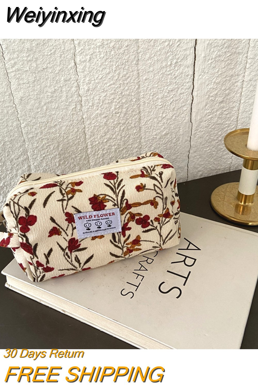 Weiyinxing Corduroy Women's Cosmetic Bag Simple Plaid Girls Canvas Pencil Case Leopard Print Ladies Lipstick Storage Bag Small Wallet