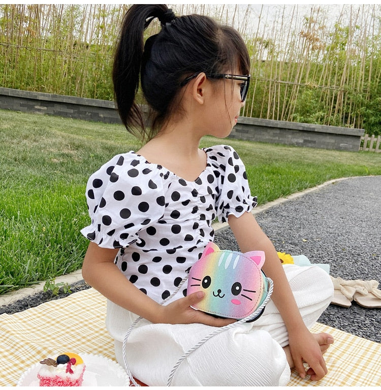 Weiyinxing Crossbody Bag for Children Cute Cartoon Cat Baby Girls Shoulder Bags PU Leather Boys Kids Small Coin Purse Handbags Wallet