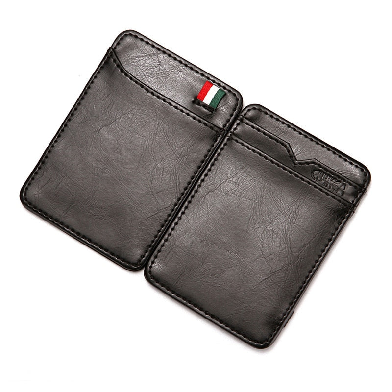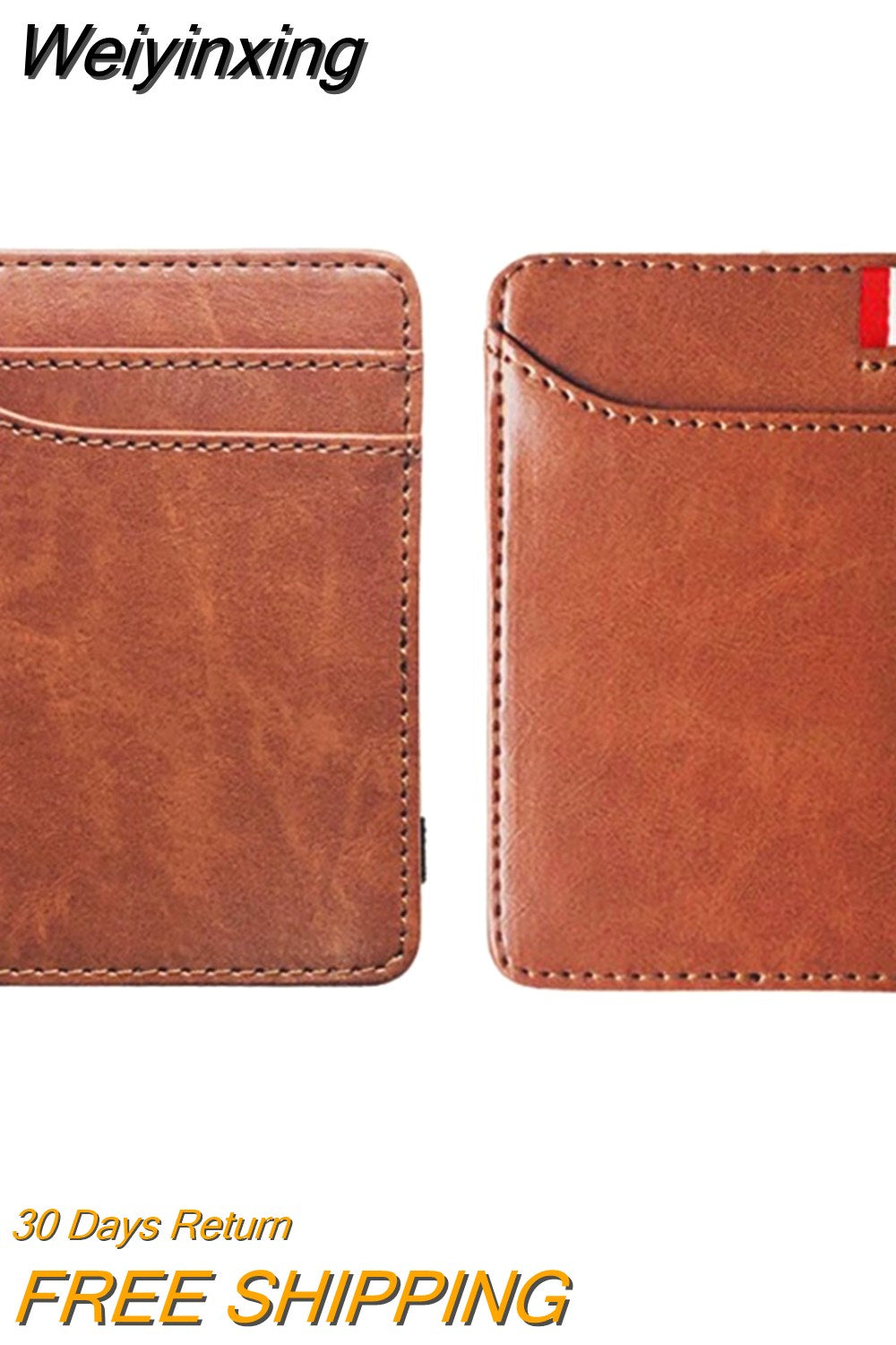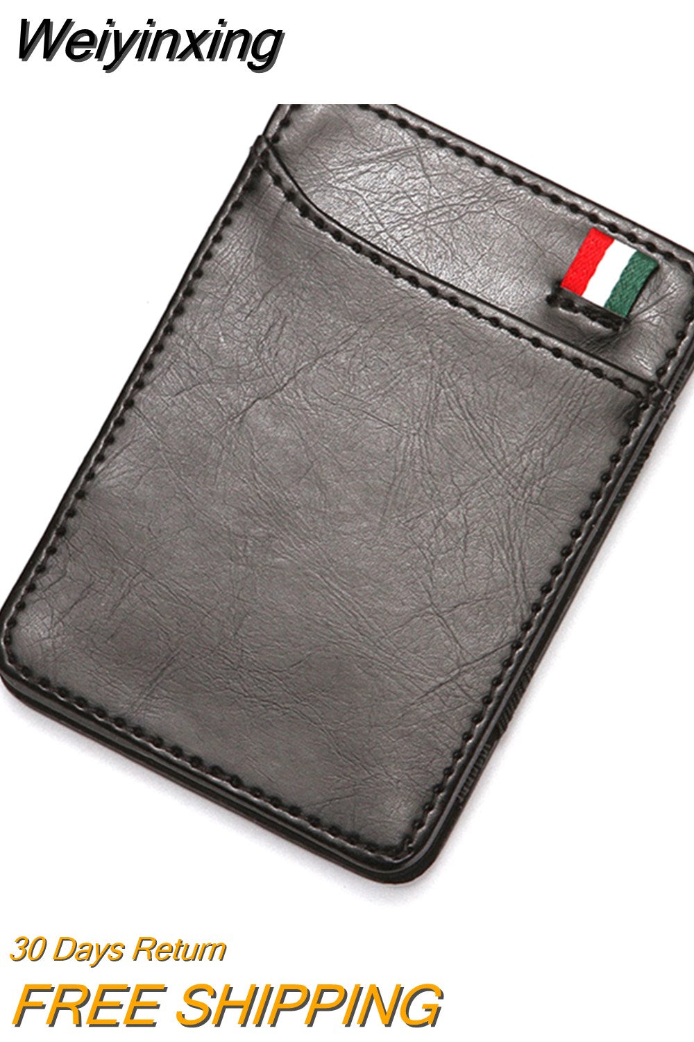 Weiyinxing Fashion Solid Mini Leather Magic Wallet Men Small Money Clips Bank Credit Card Purse ID Cash Holder For Man
