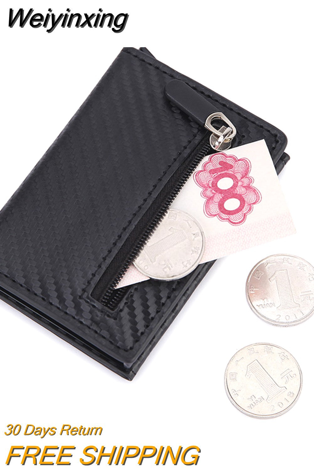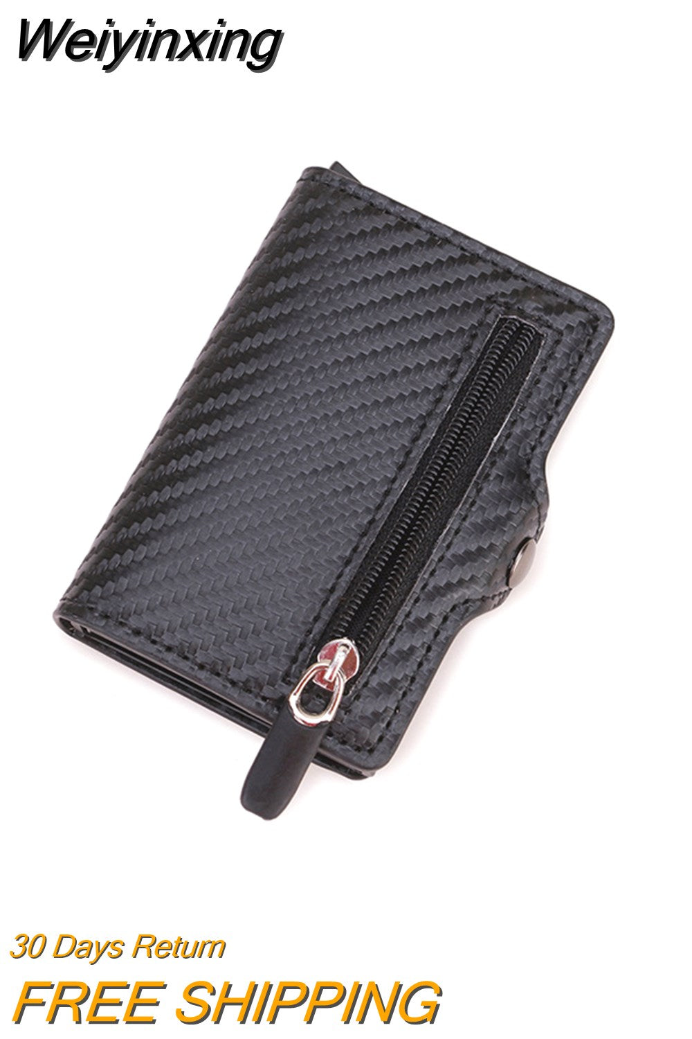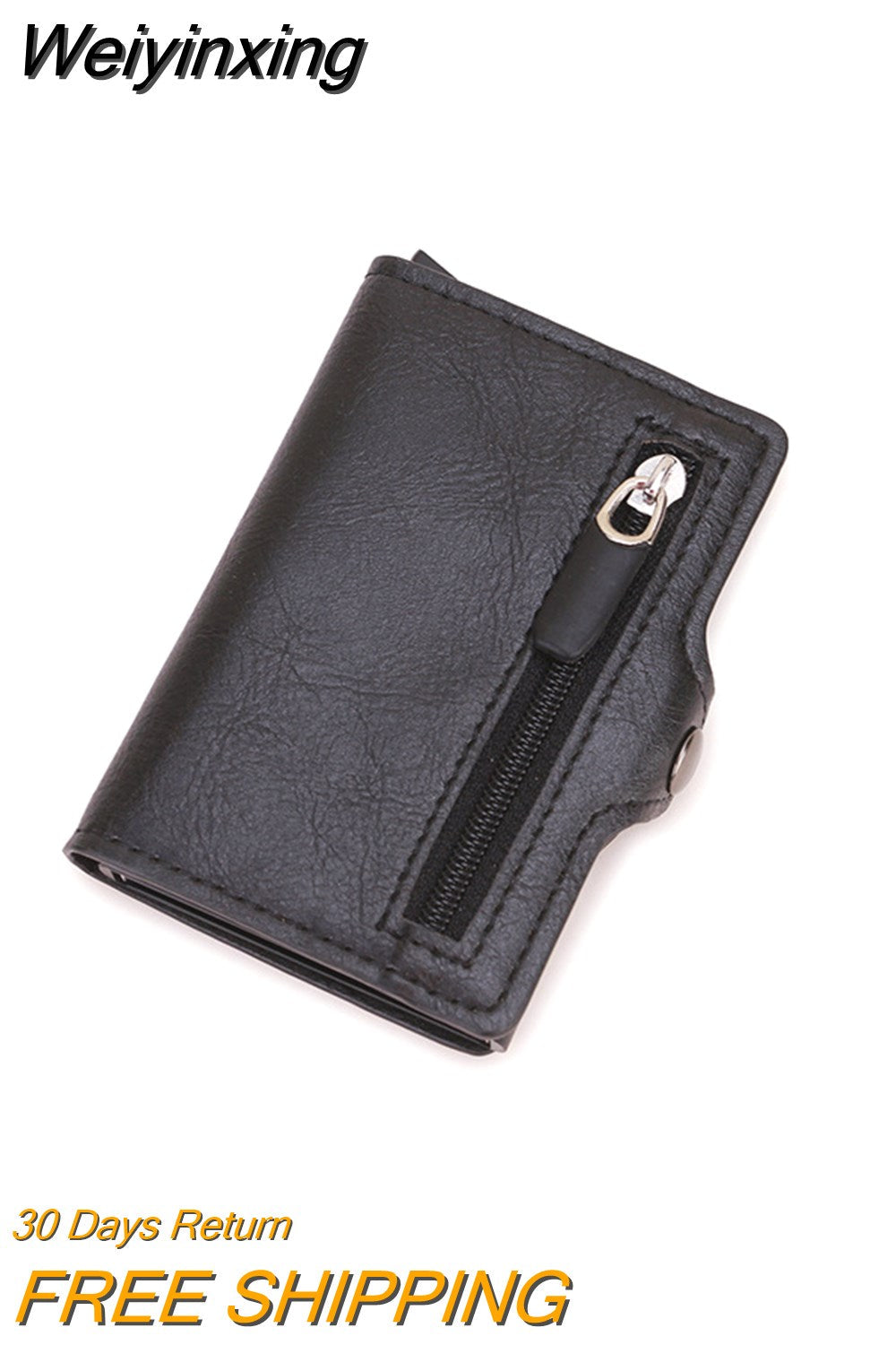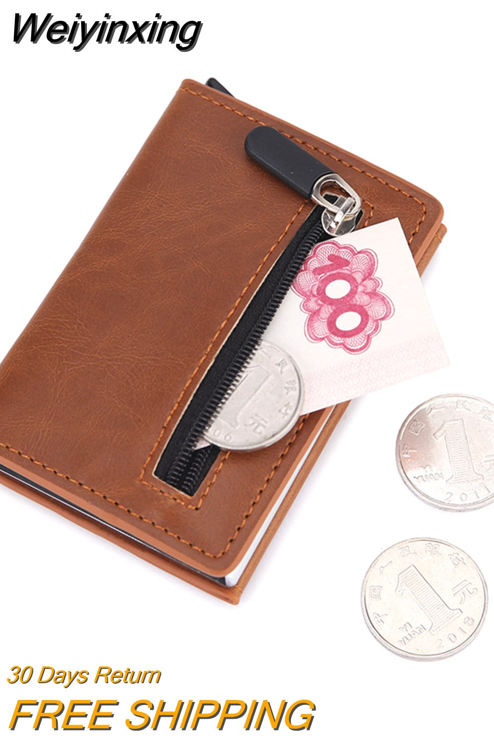 Weiyinxing Men Wallet RFID Card Holder Wallet Antitheft Aluminum Box Card Holder PU Leather Pop Up Card Case Magnet Coin Purse
