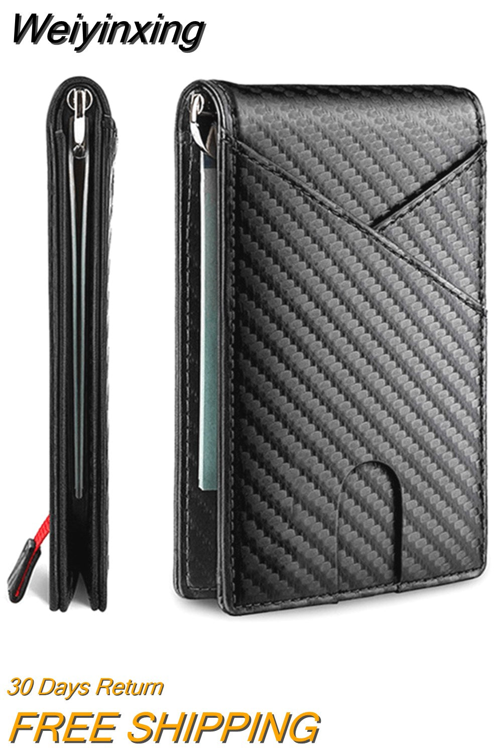 Weiyinxing Men's Wallet Money Clip Carbon Fiber Card Holder Wallet RFID Slim Money Clips Money Bags Cover Cartera Hombre