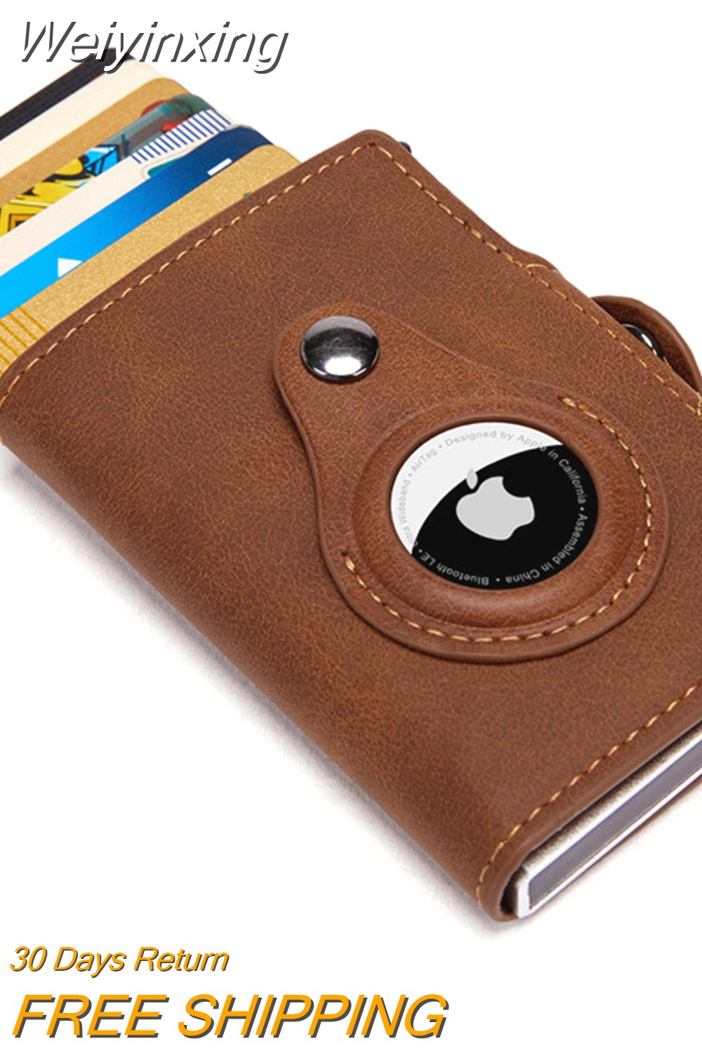 Weiyinxing Men's Wallet New Metal Aluminum Box Case Rfid Anti-theft Swipe Credit Card Holder Genuine Leather Short Zipper Coin Purse