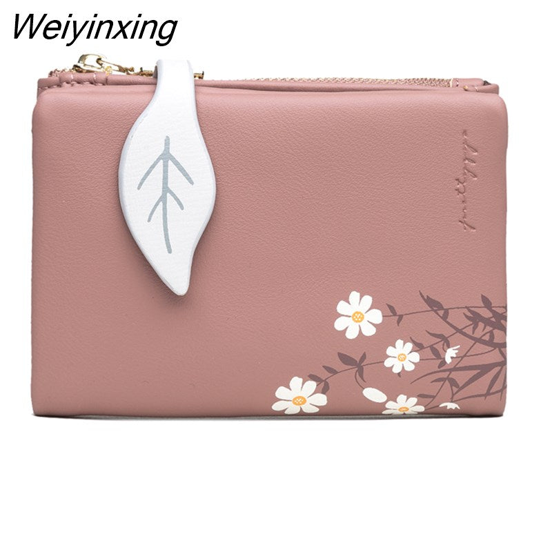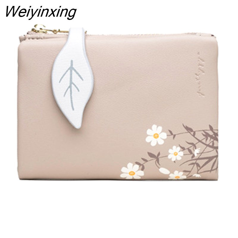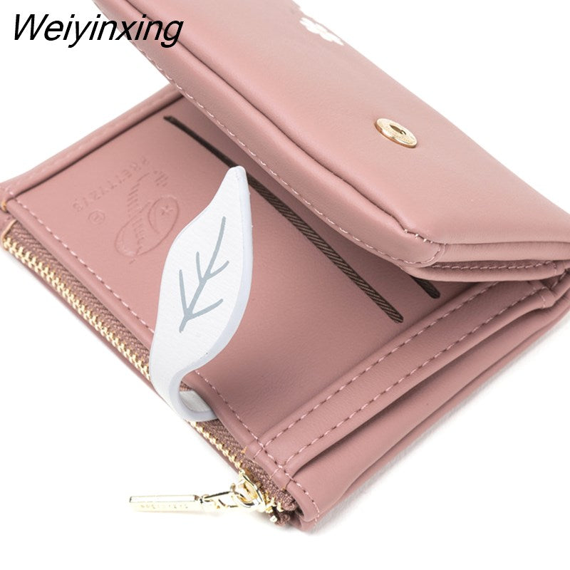Weiyinxing New PU Leather Women's Short Wallet Small Fresh Korean Zipper Folding Coin Purse Multifunctional Buckle 2 Fold Card Holder 911