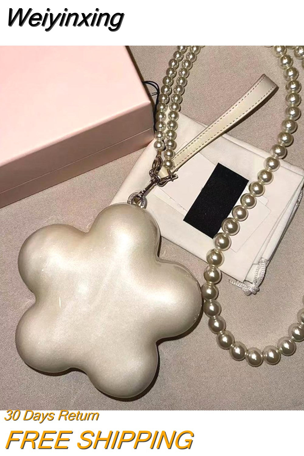 Weiyinxing Pearl Acrylic Evening Bags Designer Luxury Clutch Purse Cute Women Wallet Shell Chains Shoulder Wedding Party Box Handbag