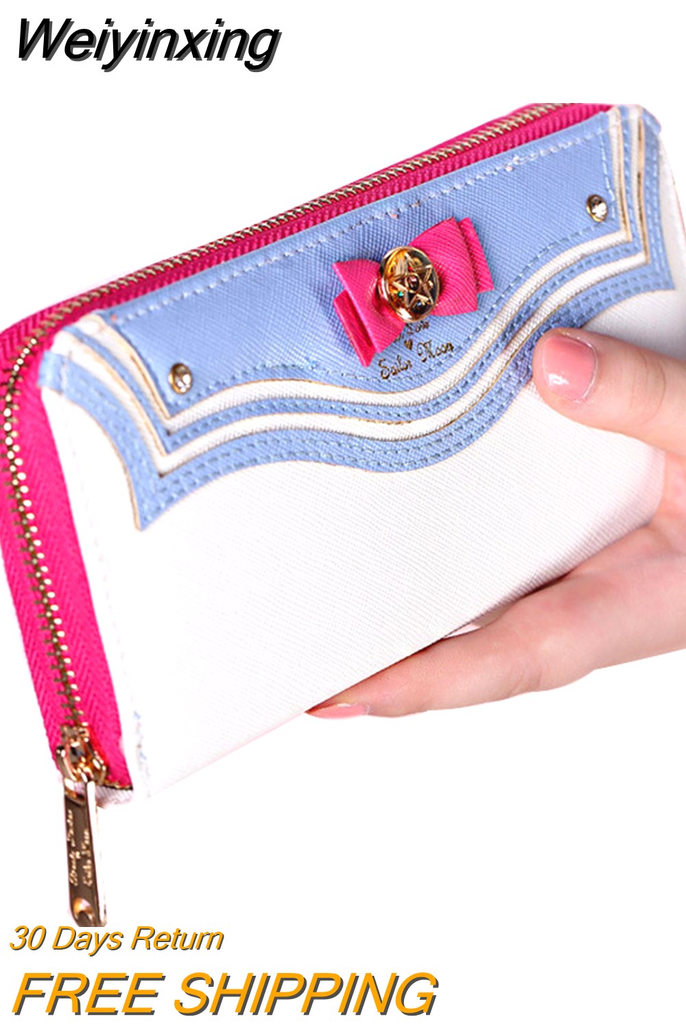 Weiyinxing Sailor Moon Designer Leather Long Wallet Women Japanese Fashion Brand Lady Zipper Purse Lovely Handbag Clutch Female