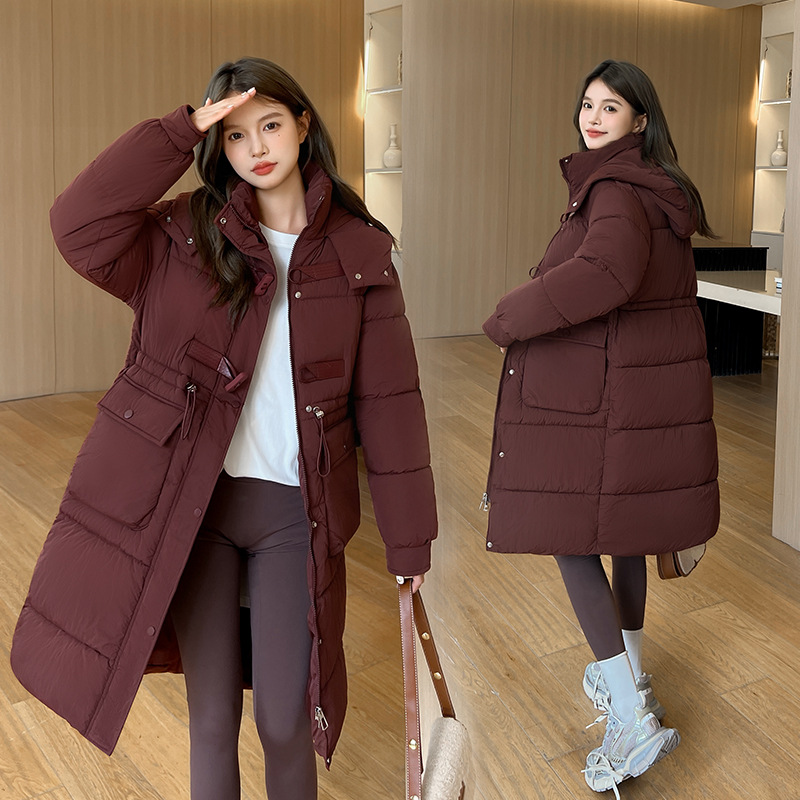 Coat Coat Female New Winter Hooded Down Cotton Long Over The Knee Thick Waist Show Thin Cotton-Padded Jacket
