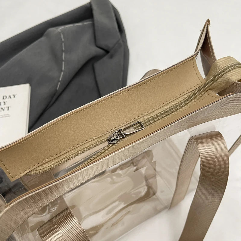 Weiyinxing 2-IN-1 Shoulder Bag Set For Women PVC Transparent Waterproof Large Capacity Shopper Beach Totes 2024 Summer Latest Handbag
