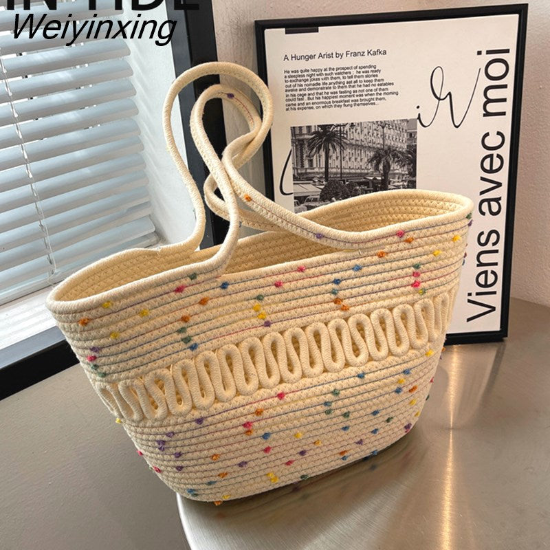 Weiyinxing Beach Basket Summer Bag straw Bag Ffashion Beach Bbags Big Rattan Shoulder Bags Large Capacity Woven Bag Hand-Made Handbags