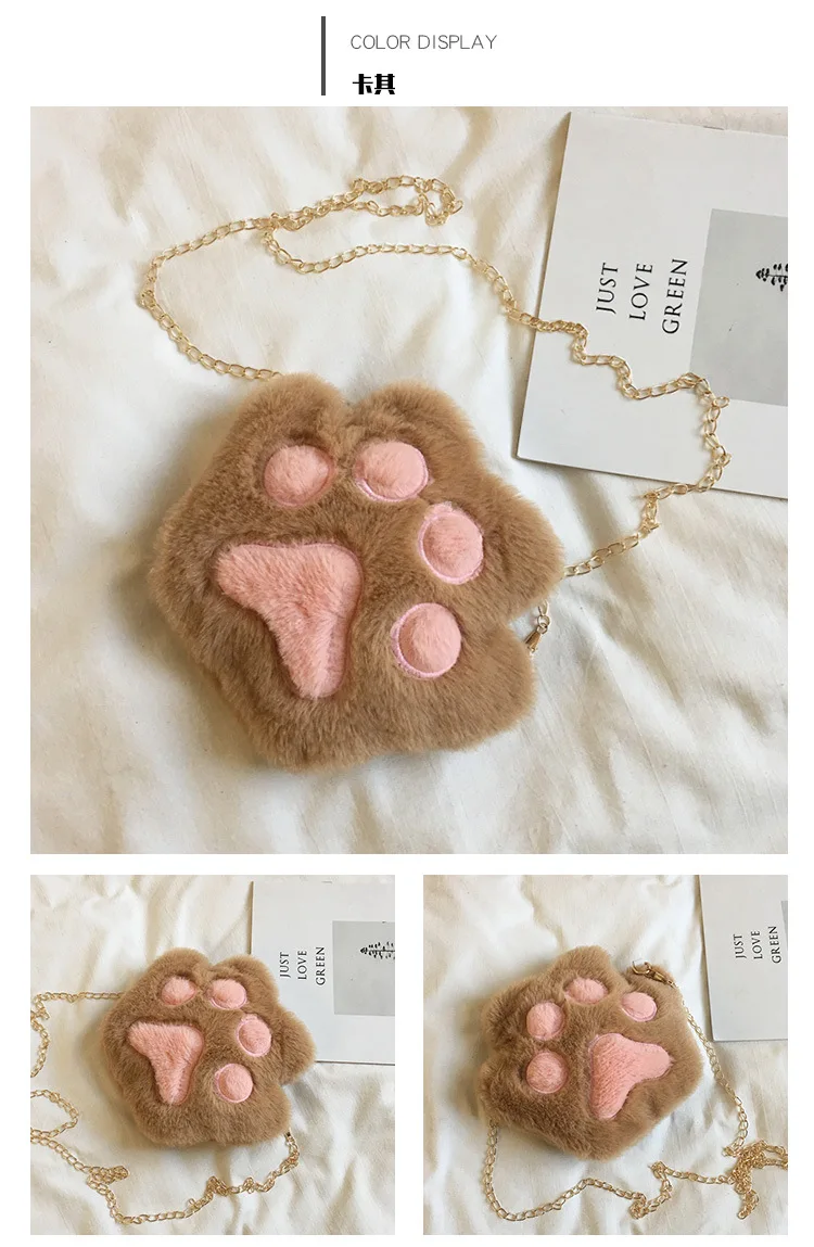 Weiyinxing Bear Paw Girls Chain Zipper Shoulder Bag Lovely Children's Soft Plush Coin Purse Baby Boys Accessories Small Crossbody Bags