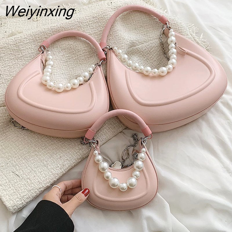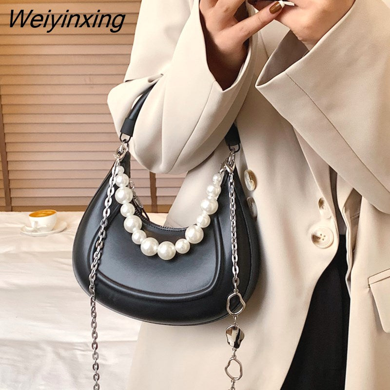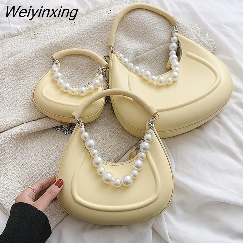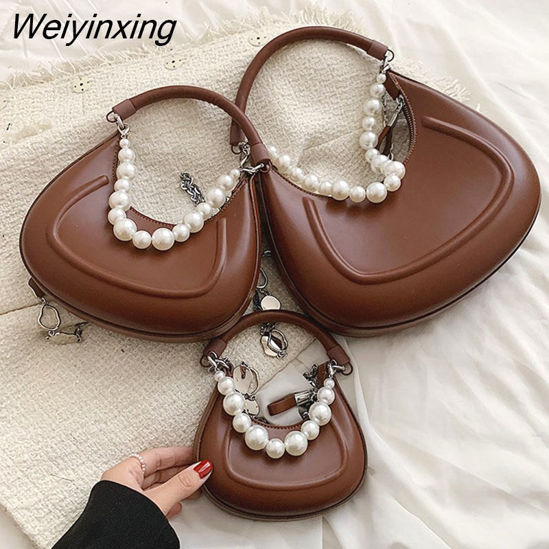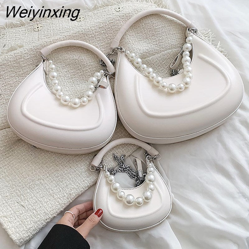 Weiyinxing Brand Tote Bag For Women 2023 Fashion Handbag And Purse Luxury Pearl Necklace Lady Crossbody Bag Simple Women's Shoulder Bag