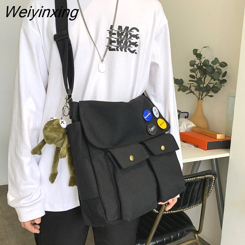 Weiyinxing Canvas Shoulder Bag Student Postman Female Wear-resistant Canvas Bag Crossbody Bags Japanese-style Handbags For Women