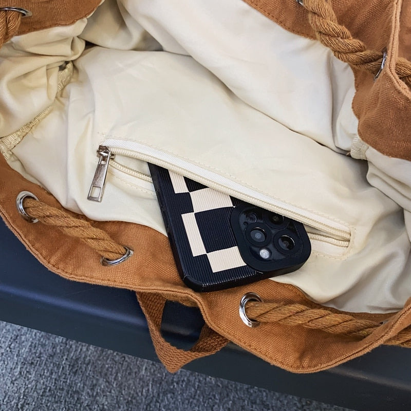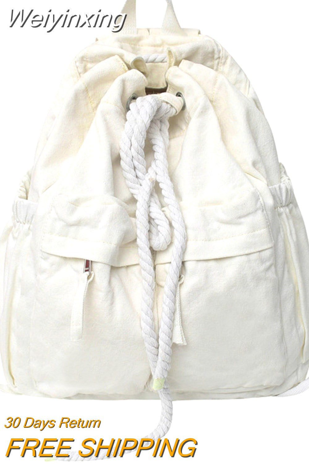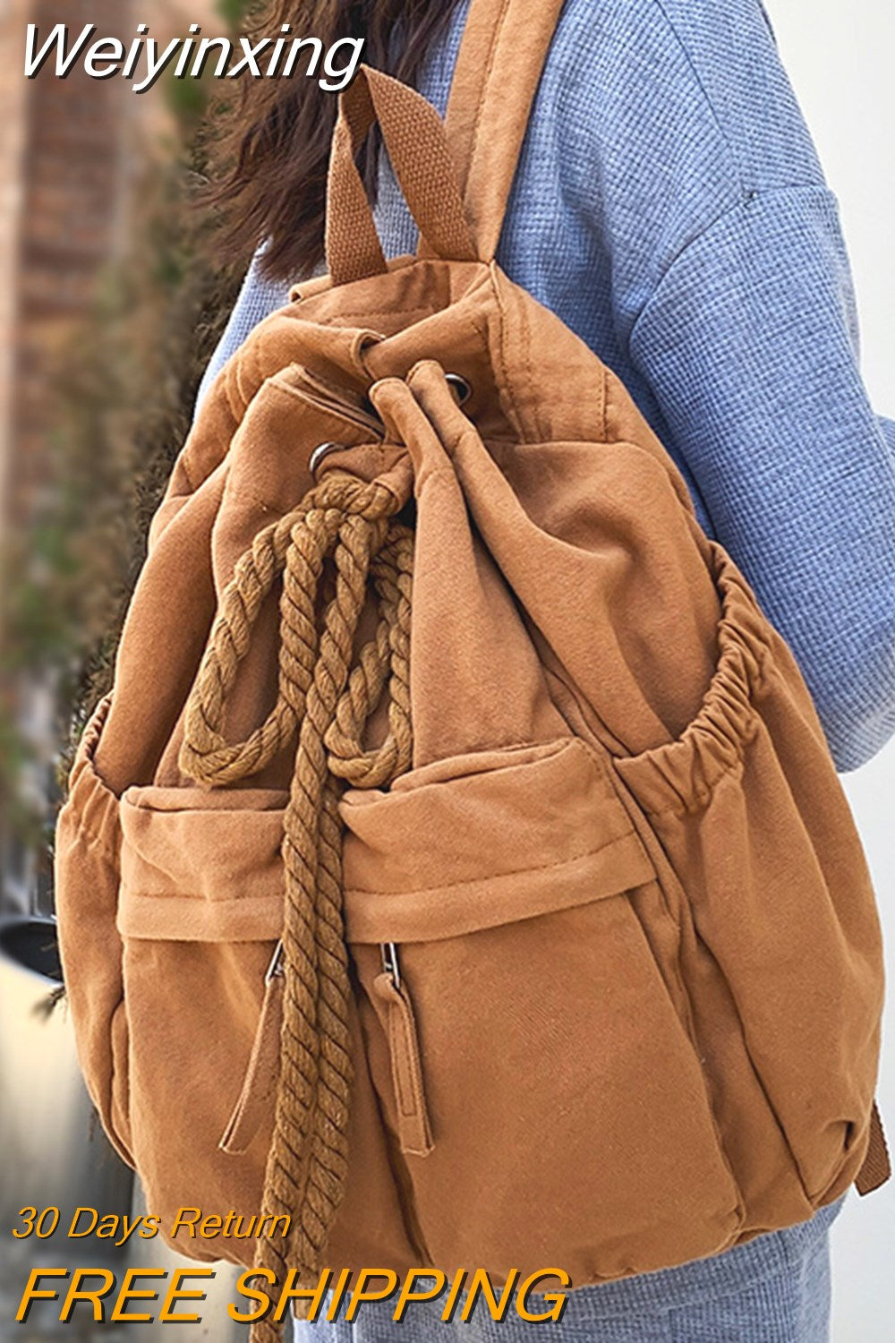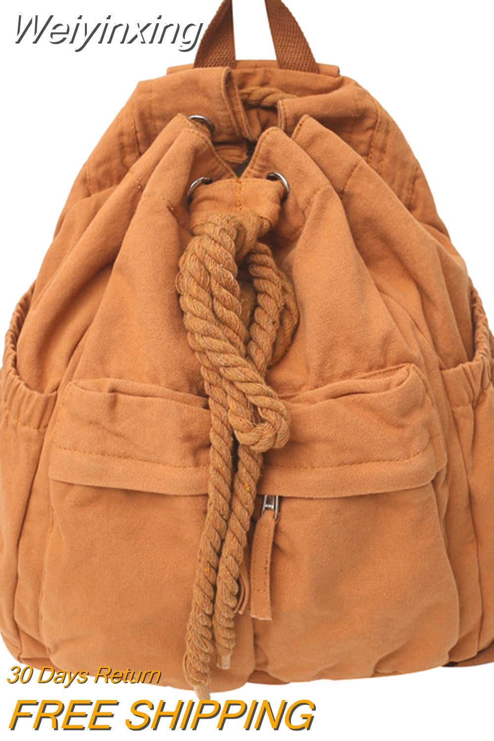 Weiyinxing Canvas Vintage Girl Leisure Drawstring Book Bag Female Brown Laptop College Backpack Women Travel School Bag Fashion Cool