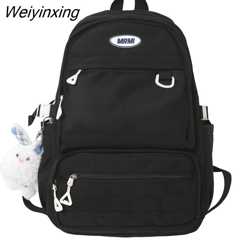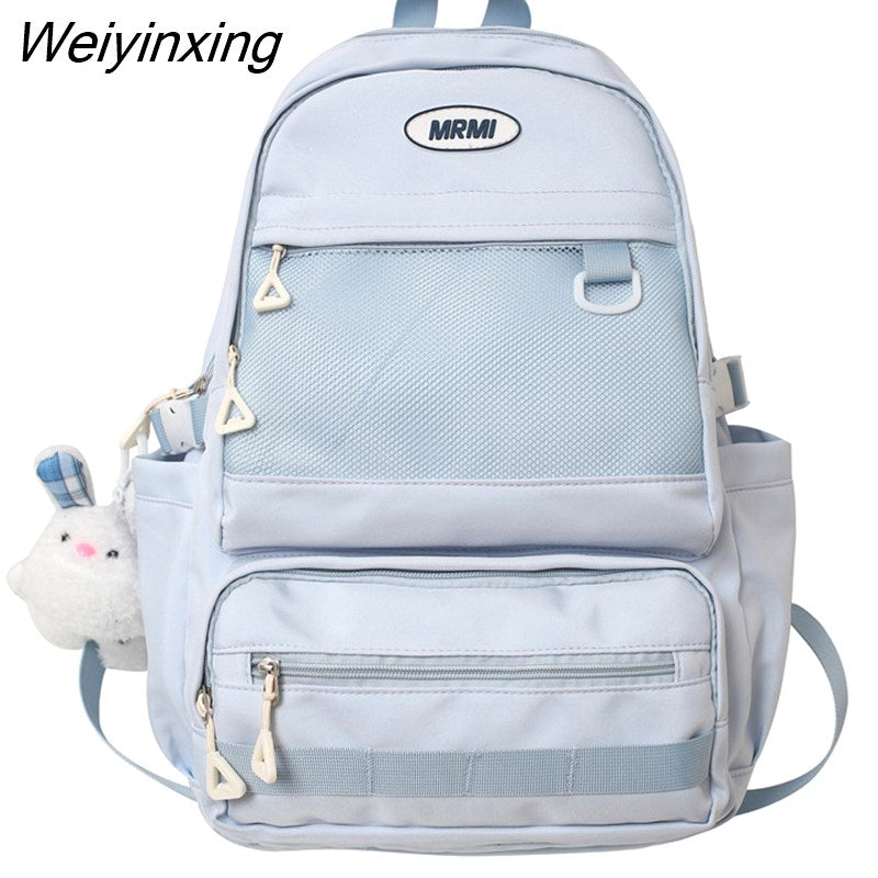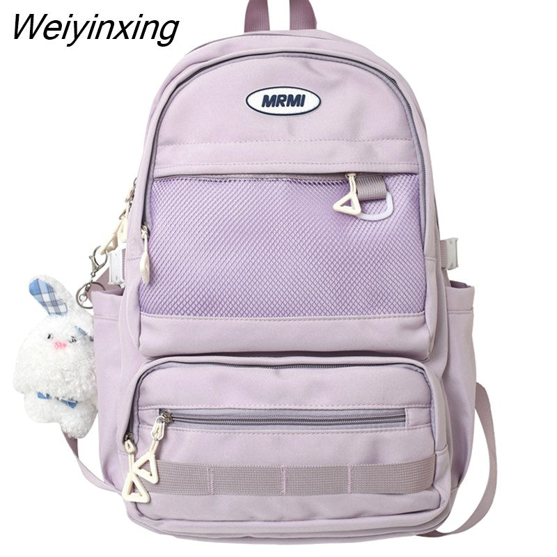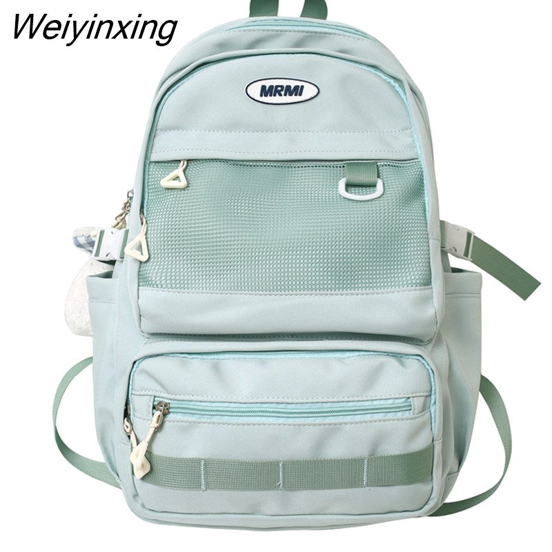 Weiyinxing Capacity Grid College Nylon Backpack Ladies Travel Backpack Multi Pocket Laptop Bag for Girls Cute Student School Bag