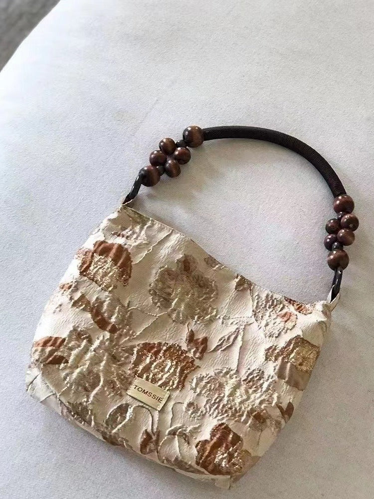 Weiyinxing Caramel Macchiato Low-Key Retro Jacquard Cloth One-Shoulder Bag Spring And Summer New One-Shoulder Armpit Bag
