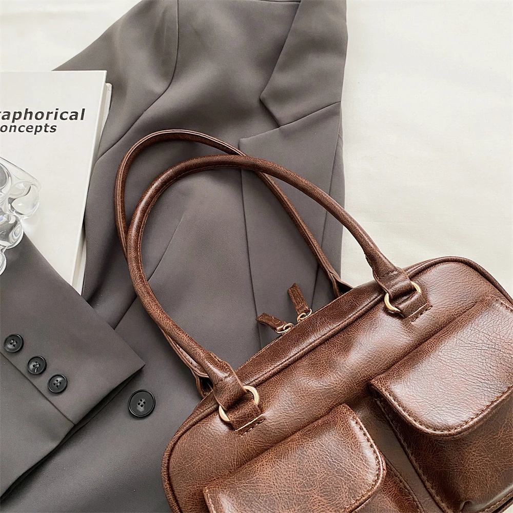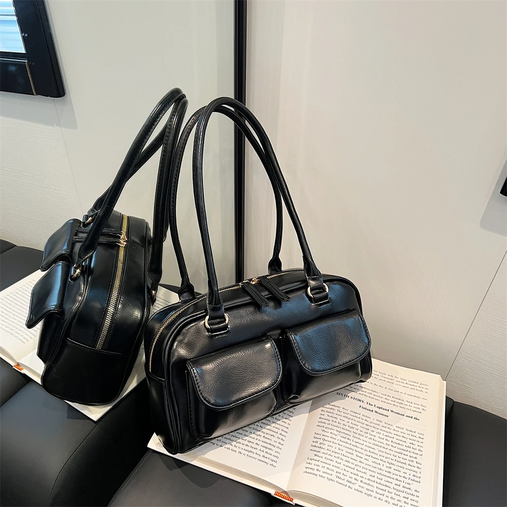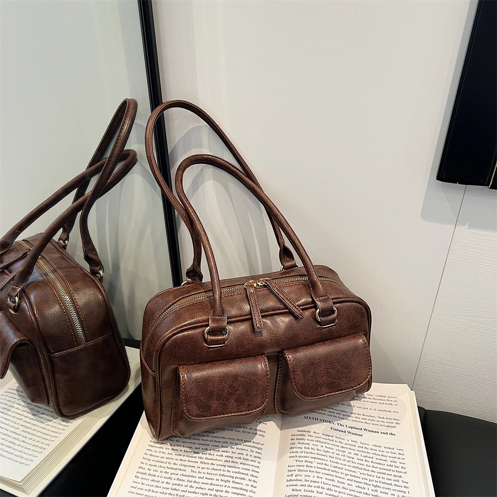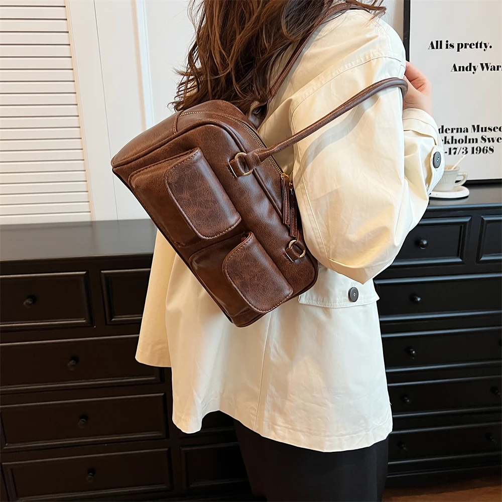 Weiyinxing Commuter Shoulder Bags For Women Retro Multi Pockets Big Capacity Underarm Boston Pillow Bag 2024 Luxury Designer Handbags