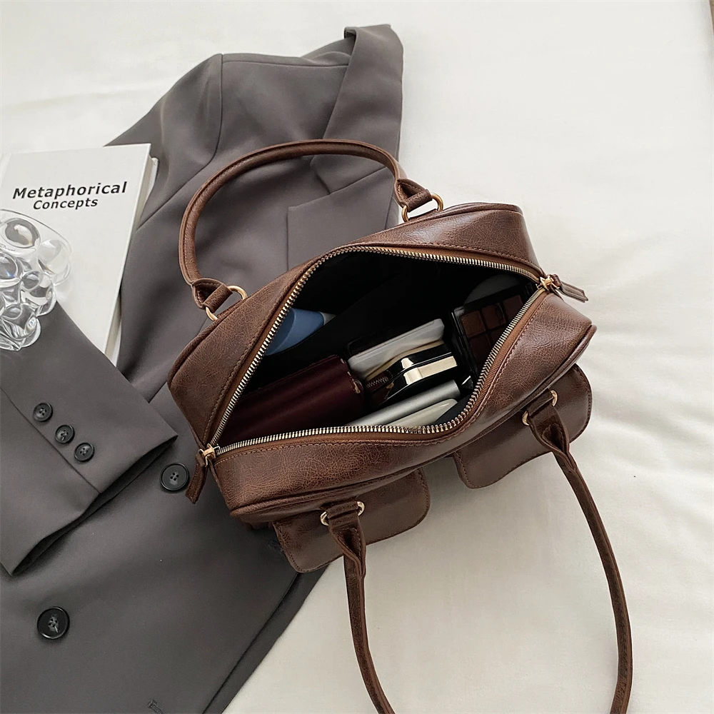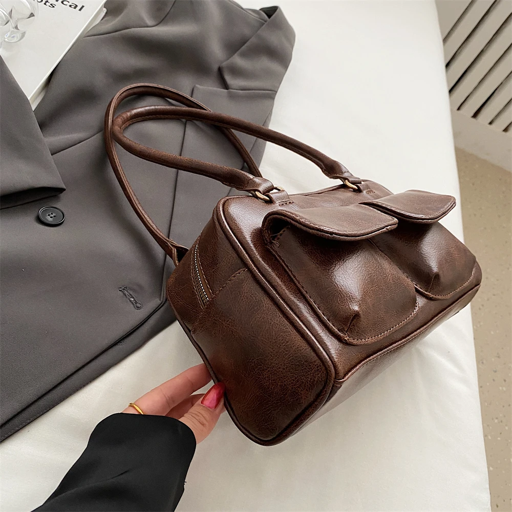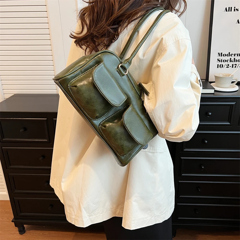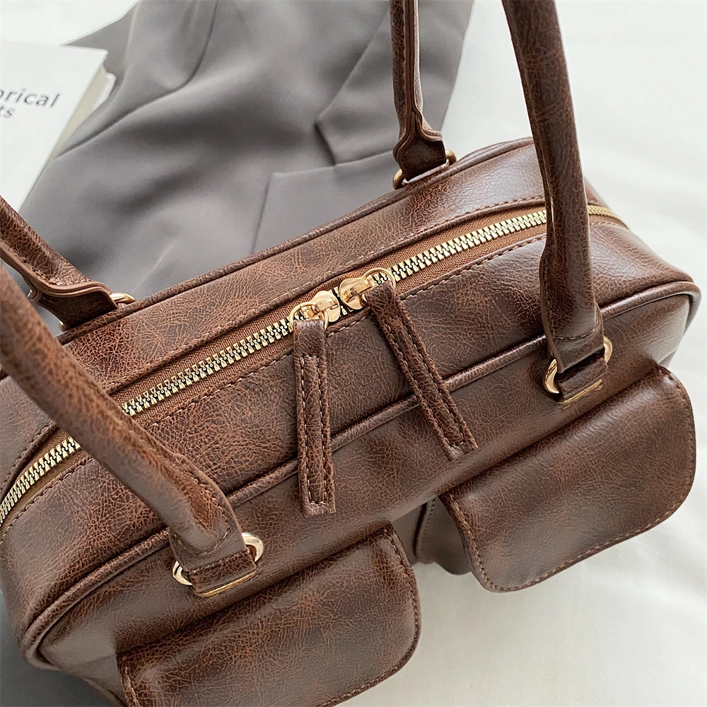 Weiyinxing Commuter Shoulder Bags For Women Retro Multi Pockets Big Capacity Underarm Boston Pillow Bag 2024 Luxury Designer Handbags