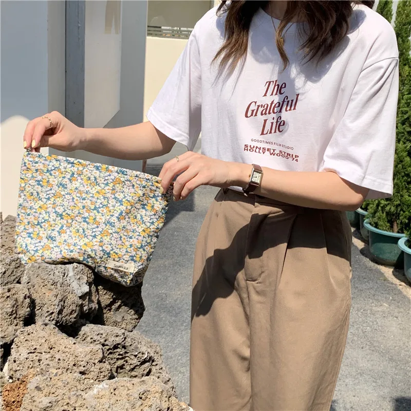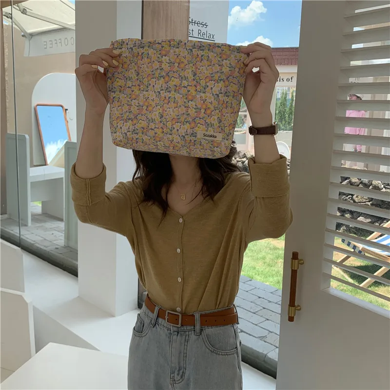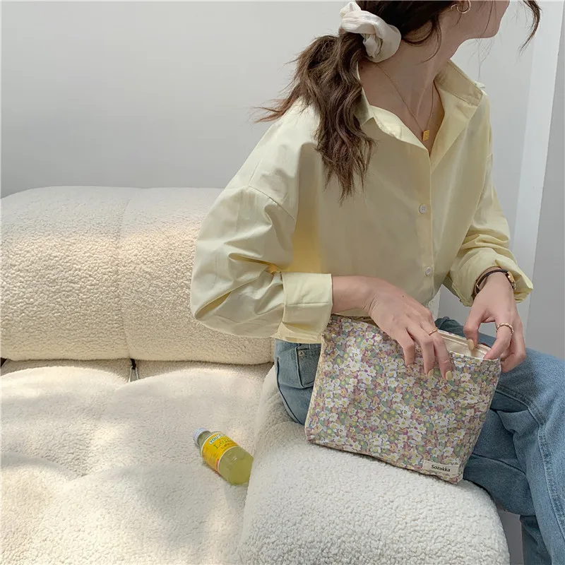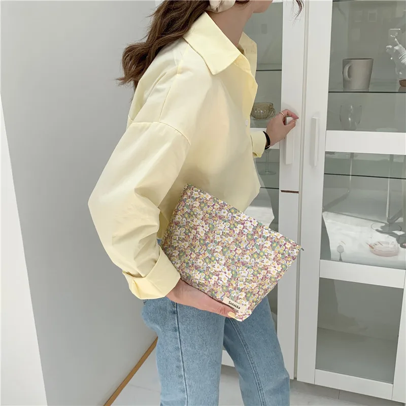 Weiyinxing Cosmetic Bag Cotton Fabric Women Make Up Storage Pouch Japan Style Zipper Cosmetic Pouch Vintage Phone Clutch Beauty Case