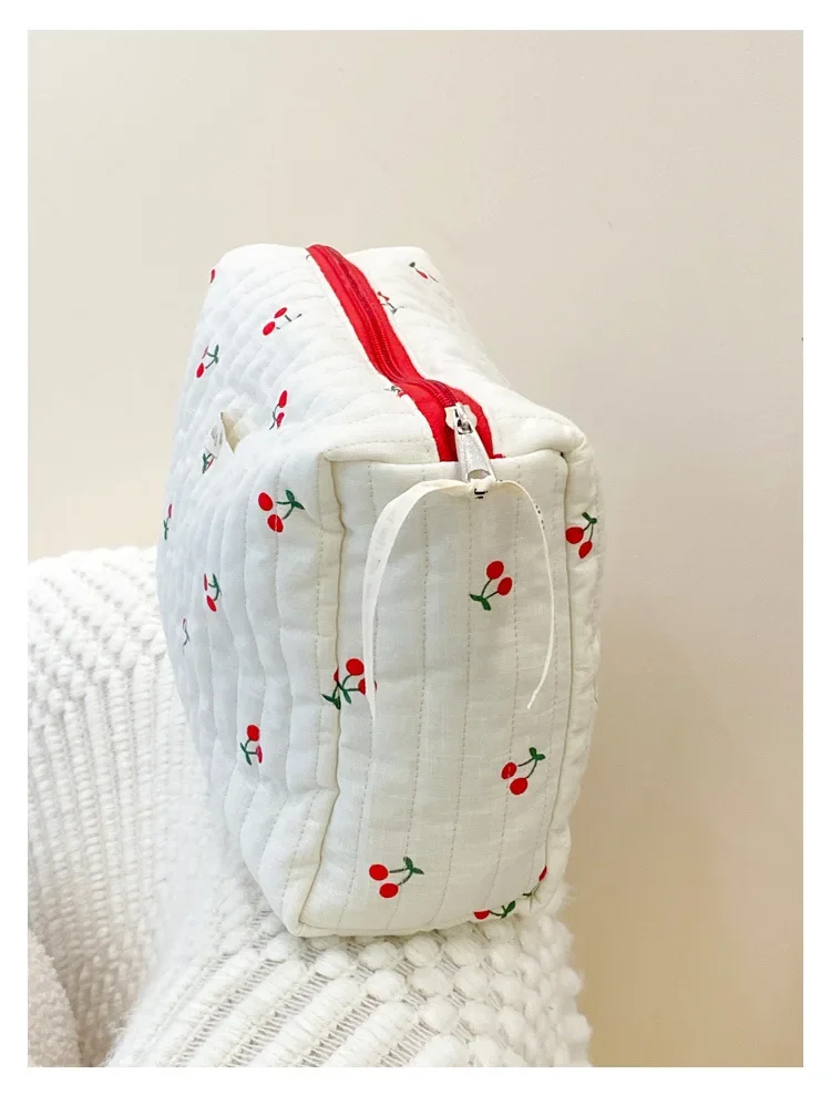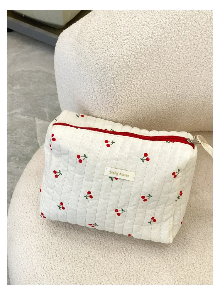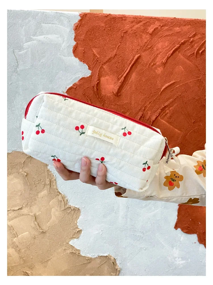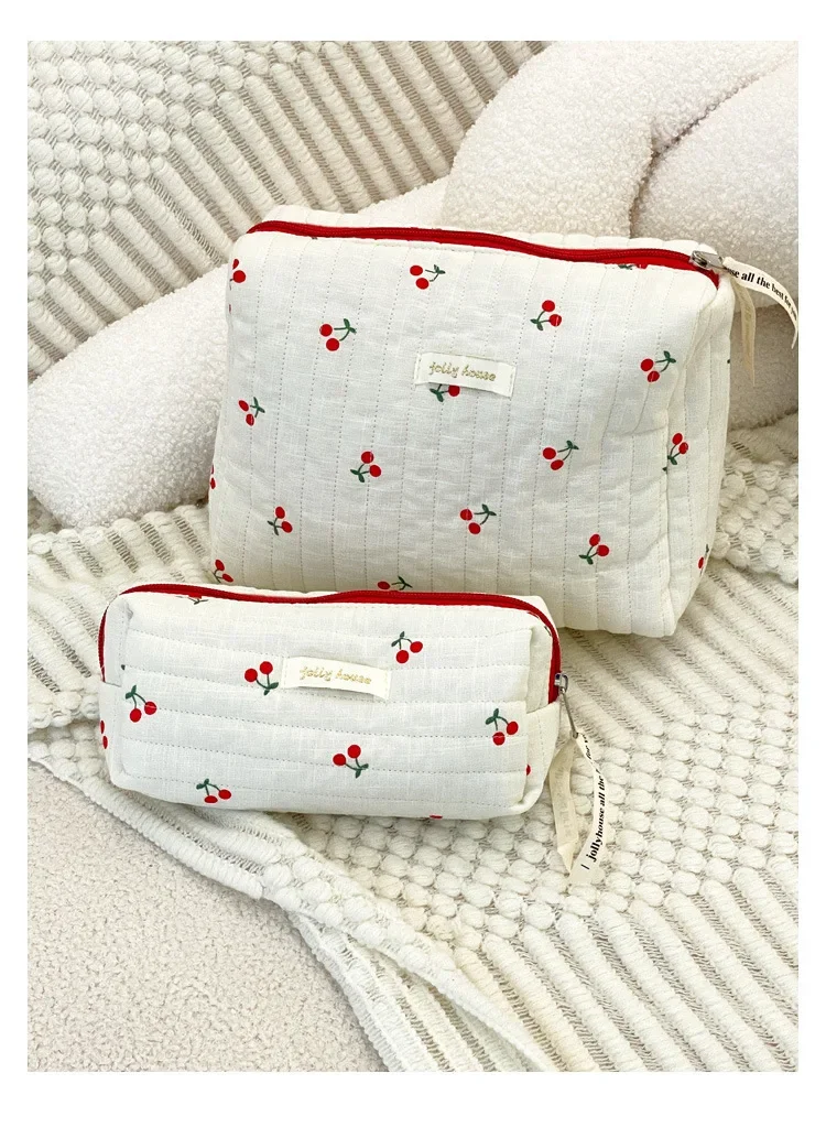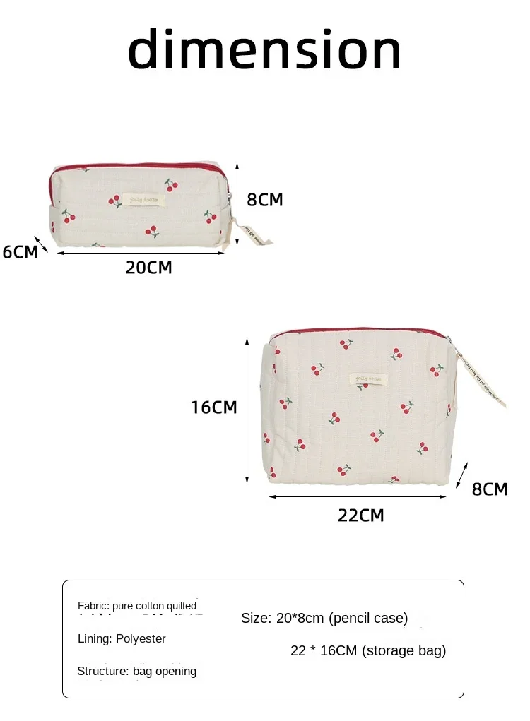 Weiyinxing Cotton Ladies Travel Storage Bag Retro Cherry Women's Cosmetic Bags Cute Design Girls Pencil Case Makeup Bag Handbags