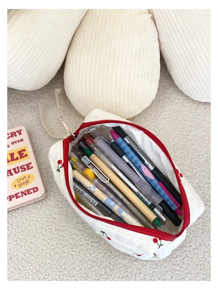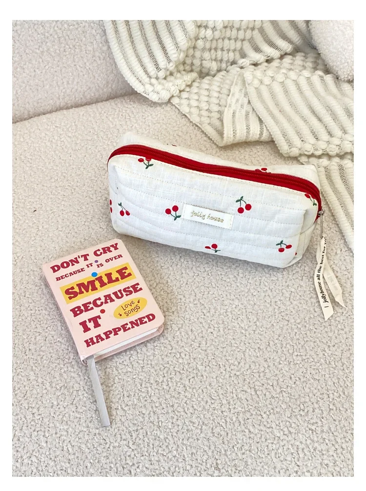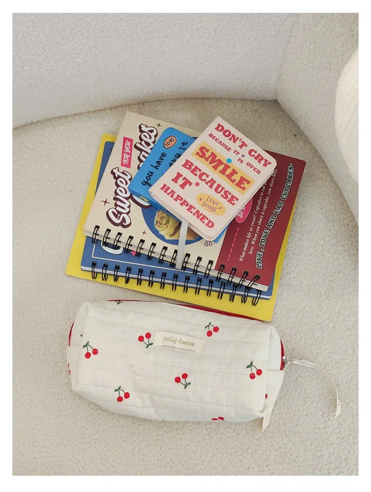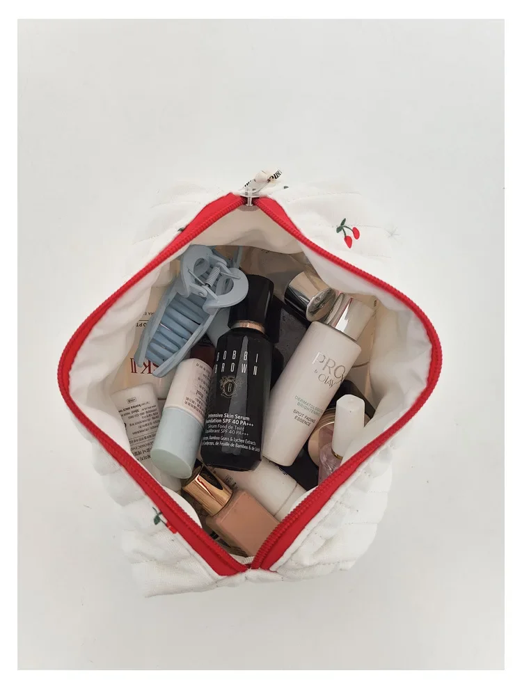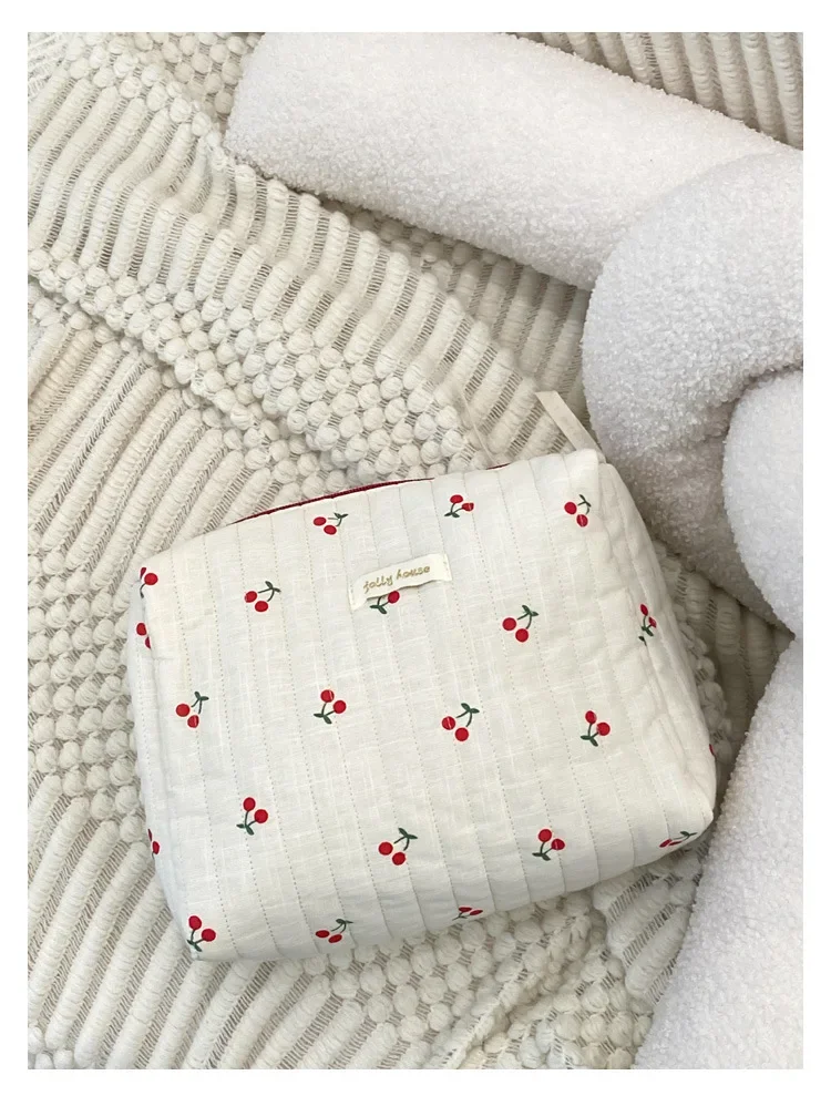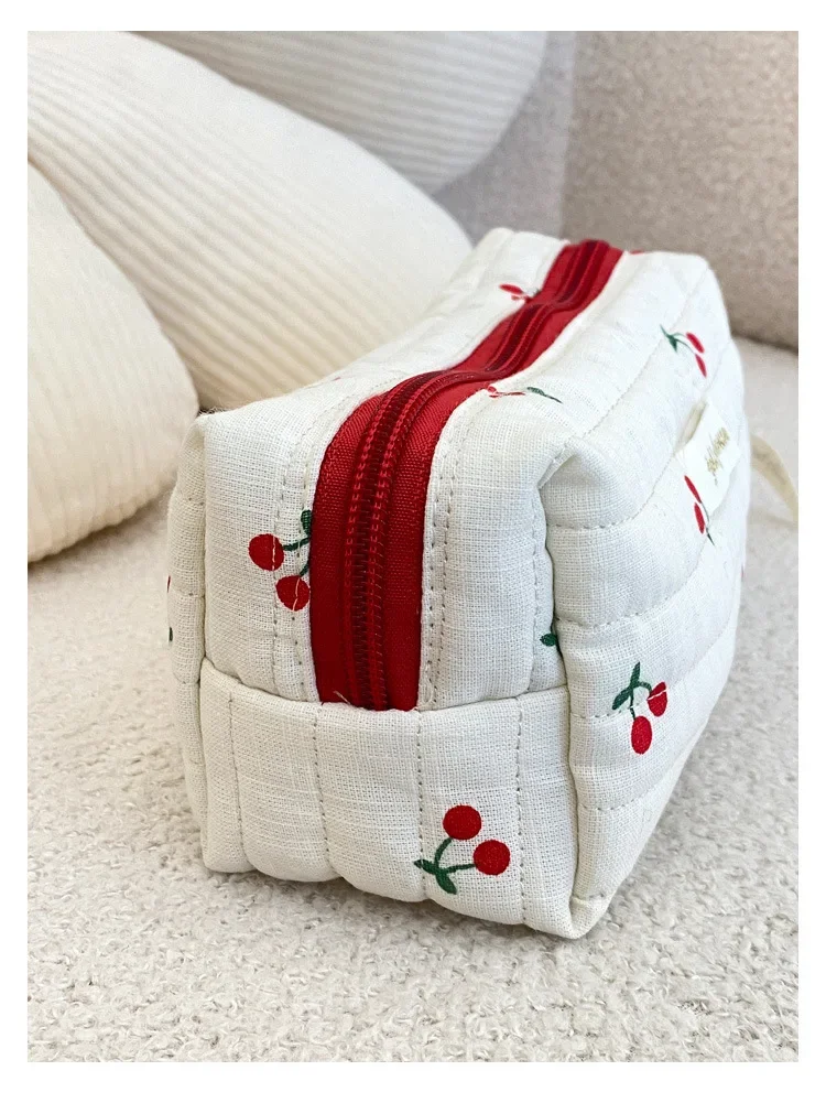 Weiyinxing Cotton Ladies Travel Storage Bag Retro Cherry Women's Cosmetic Bags Cute Design Girls Pencil Case Makeup Bag Handbags