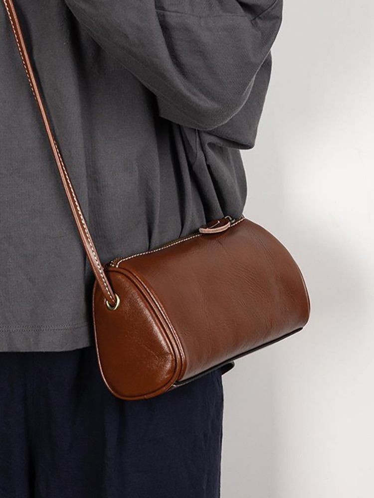 Weiyinxing Cylinder Bag Women's 2024 New Women's Bag Shoulder Bag Armpit One-Shoulder Bag Leisure Vintage Leather Pillow Bag
