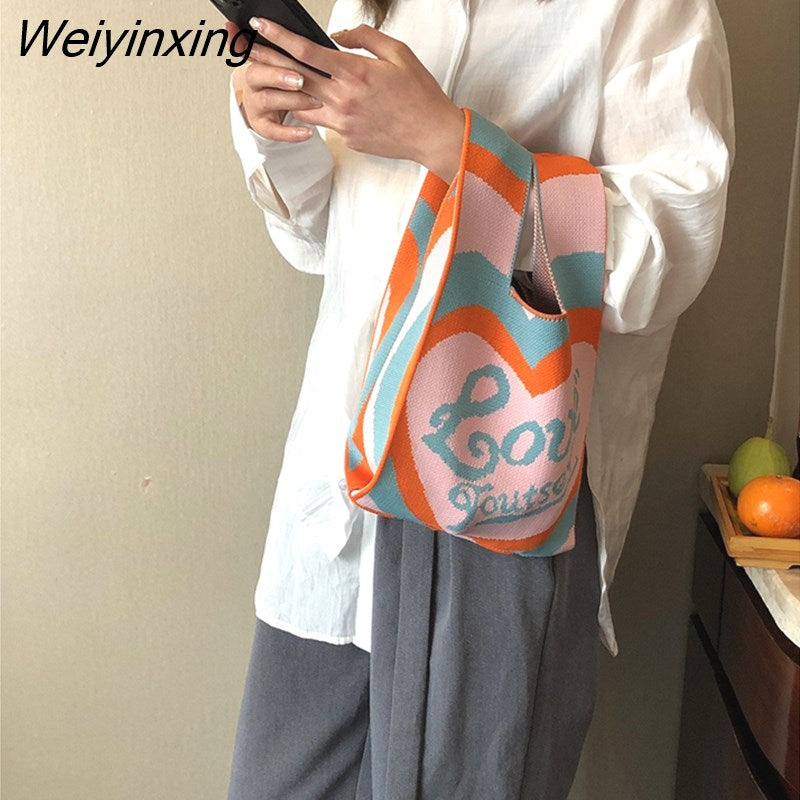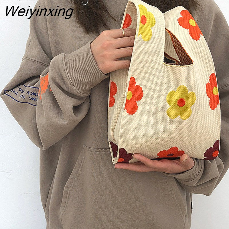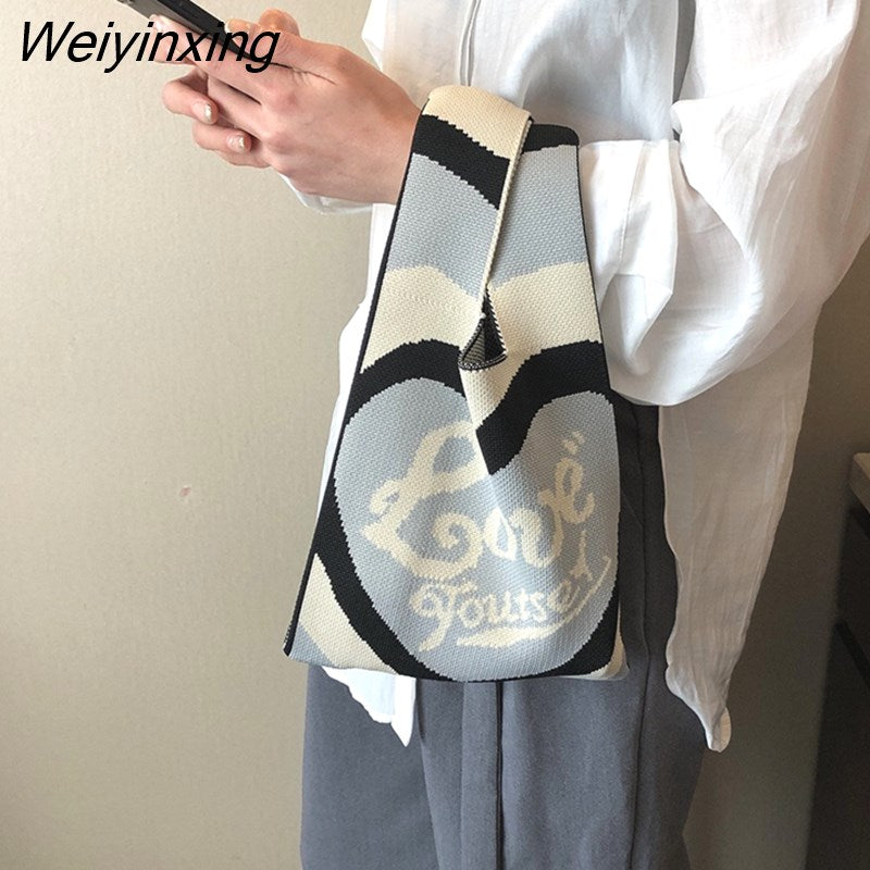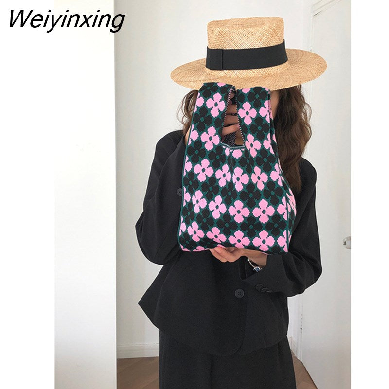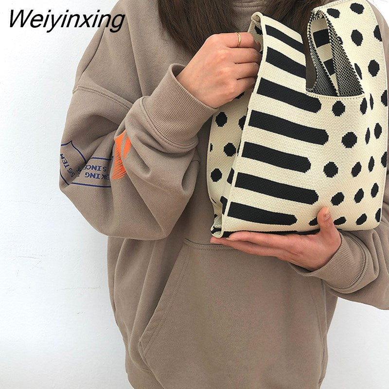 Weiyinxing Design Knitted Handbags Wrist Bags For Women Knitted Women's Handbag Ladies Carry Tote bag pouch sac a main femme