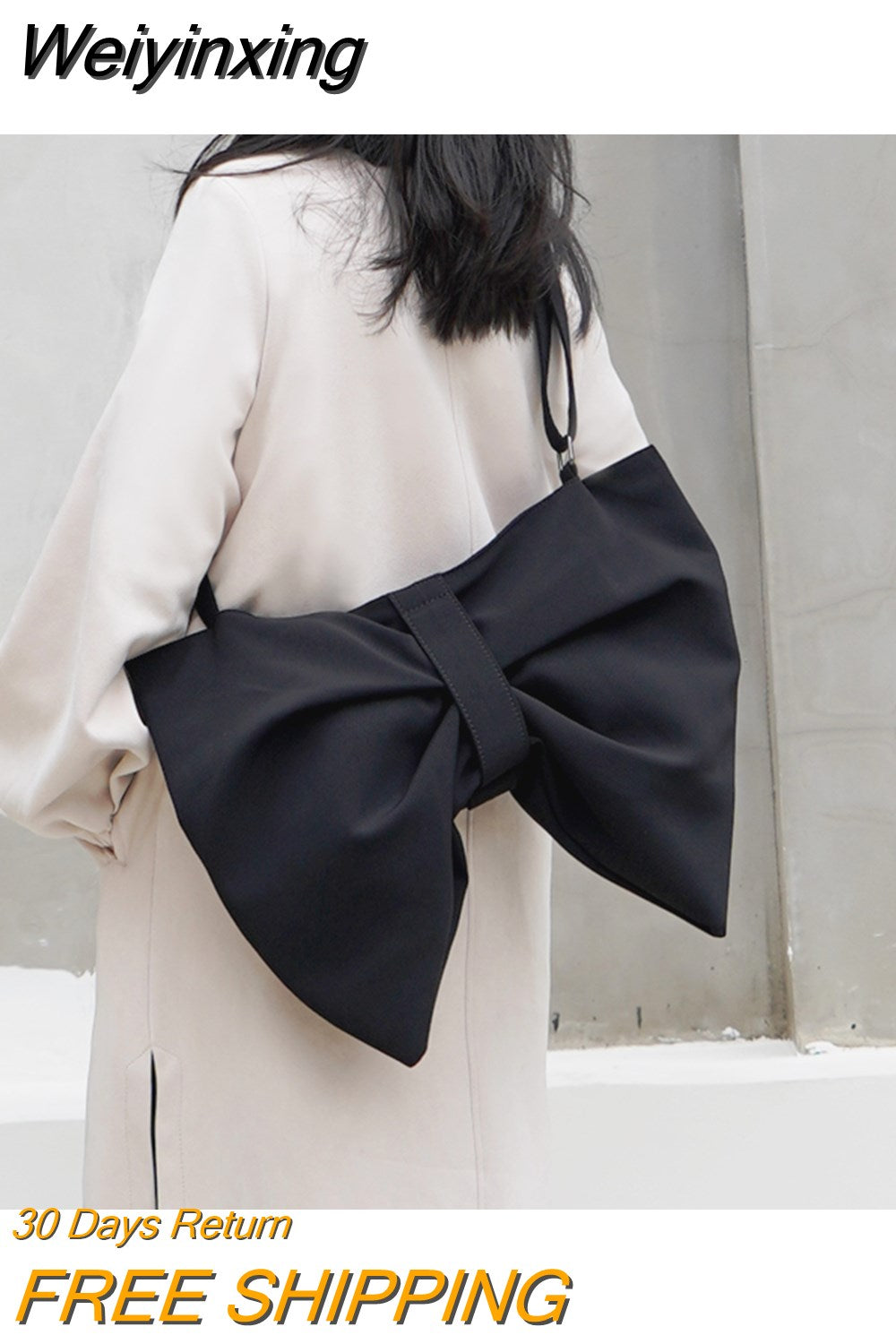Weiyinxing Design Women Canvas Shoulder Bags Large Capacity Ladies Bowknot Crossbody Bags Portable Female Casual Tote Handbags 911
