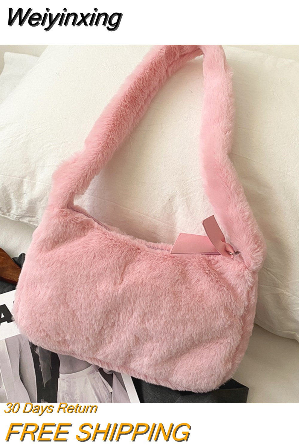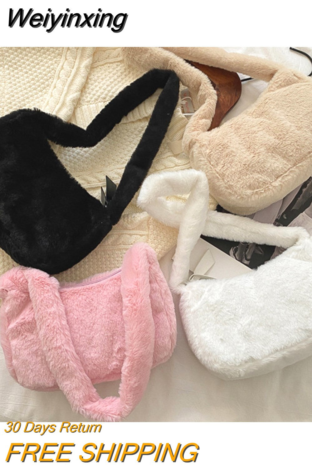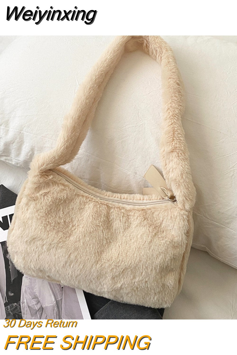 Weiyinxing Design Women Soft Plush Hobos Shoulder Bags Winter Furry Ladies Clutch Purse Handbag Fashion Female Underarm Bag
