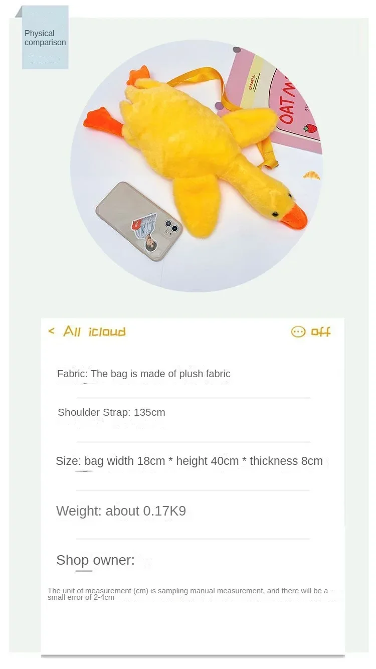 Shape: Big white goose plush bag