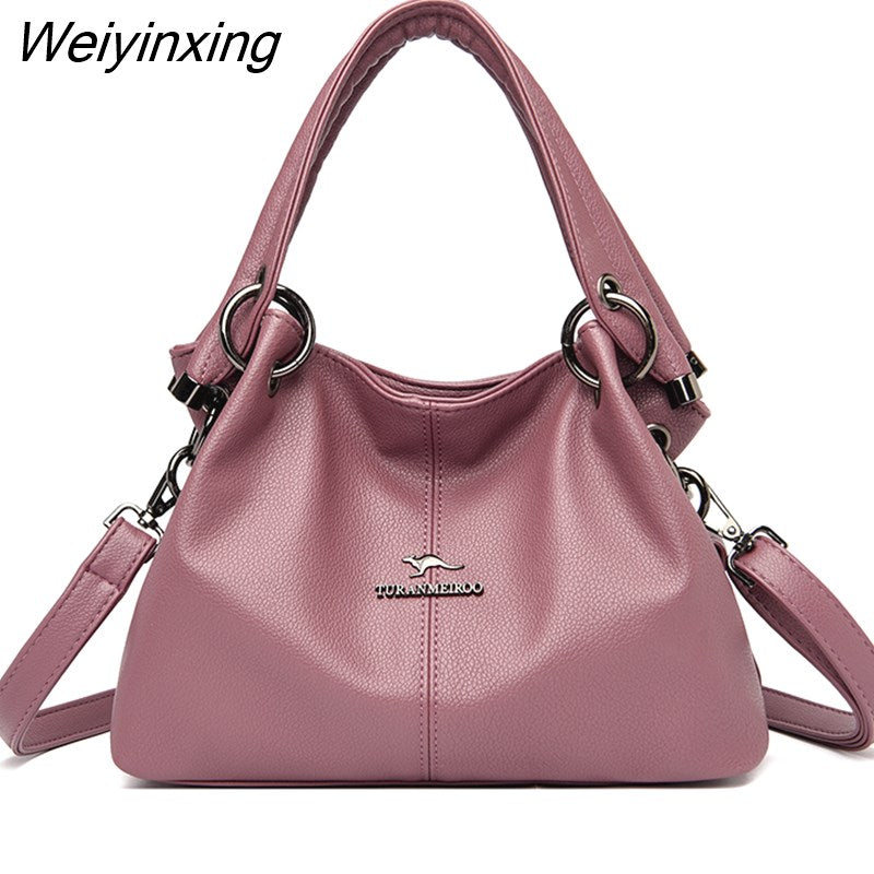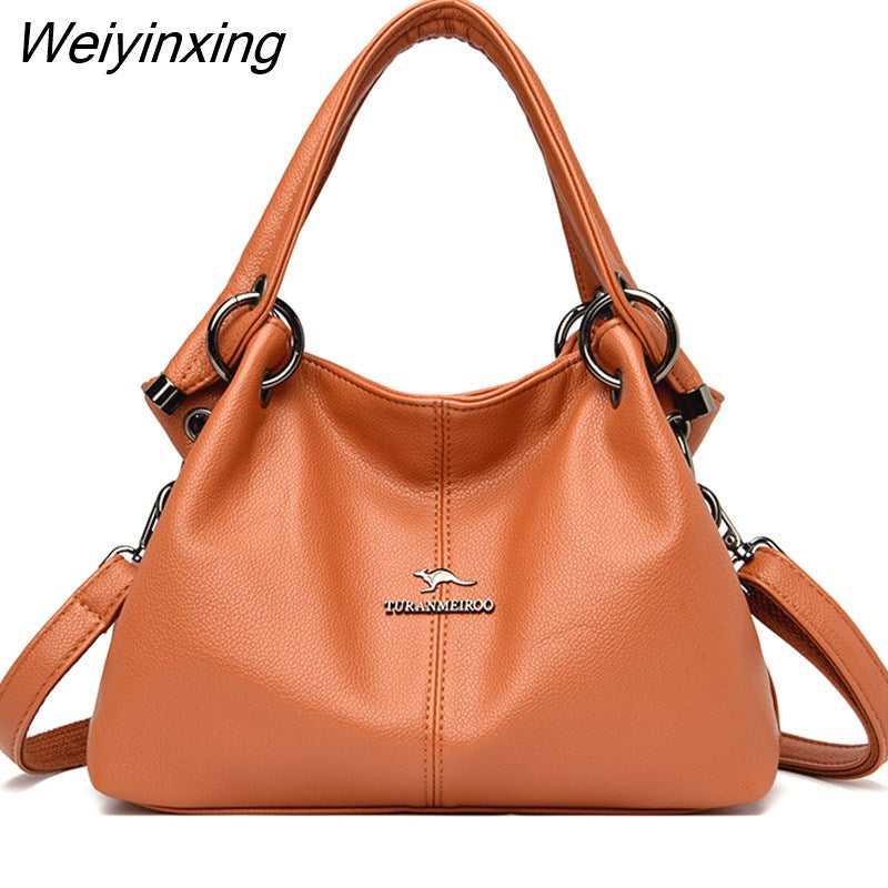 Weiyinxing Fashion High Quality Solid Color Leather Women's Handbags Large Capacity Messenger Bags Ladies Casual Simple Messenger Bags