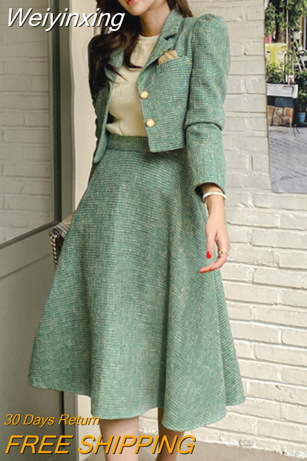 Weiyinxing Fashion OL Tweed 2 Piece Set Women Crop Top Short Jacket Coat + Long Skirts Sets High Quality Fall Winter Two Piece Suits
