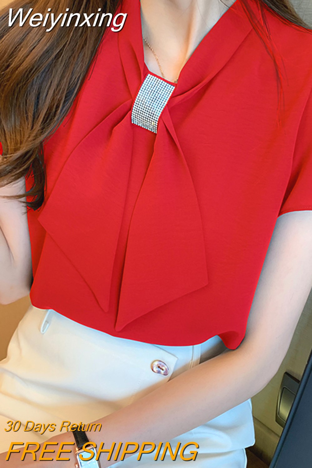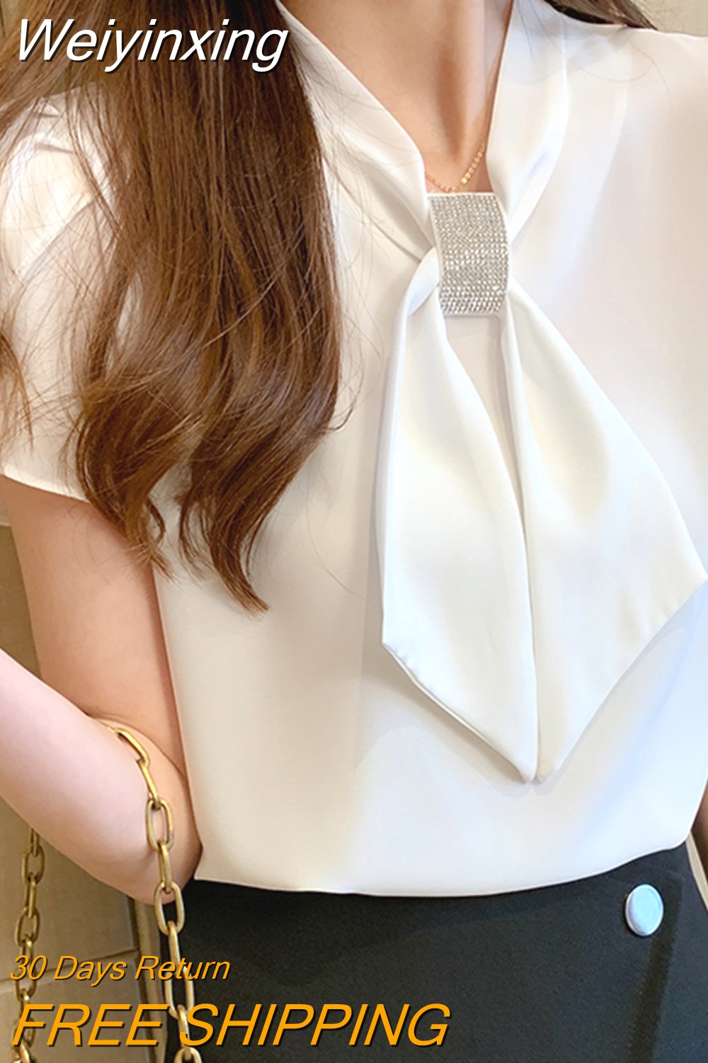 Weiyinxing Femme Top Summer Short Sleeve V-Neck Chiffon Blouse Shirt Blouse Women Blusas Mujer De Moda 2023 Verano Tops Women E844
