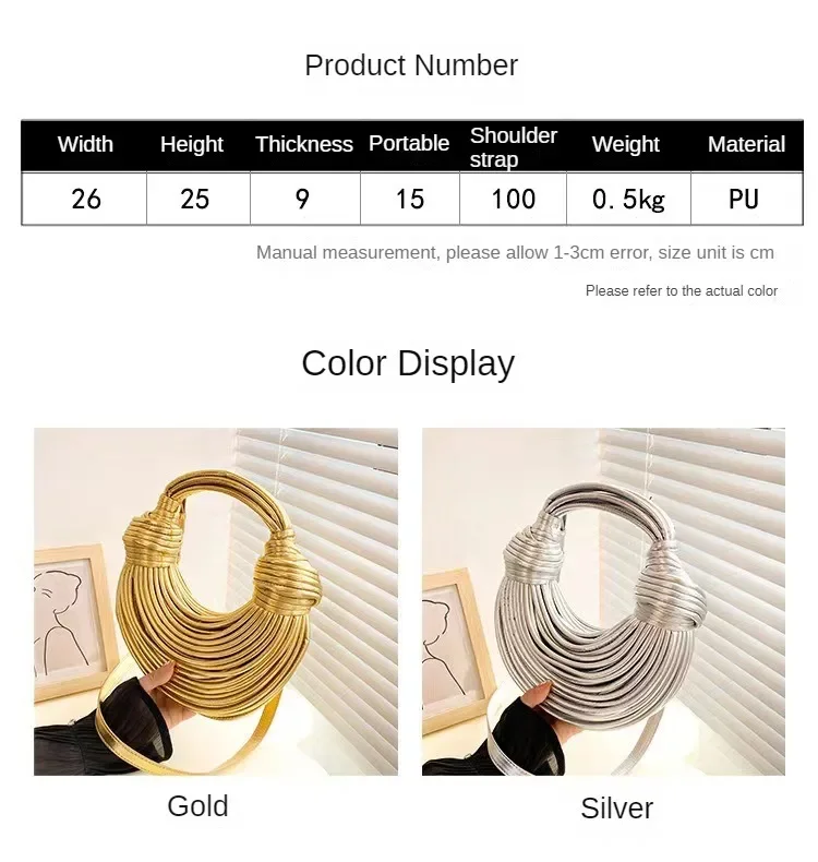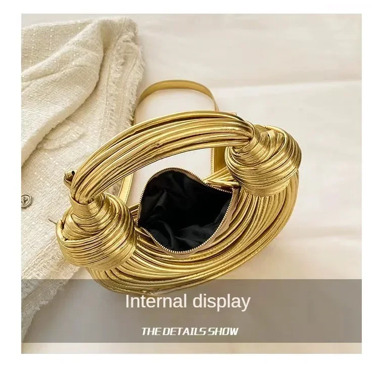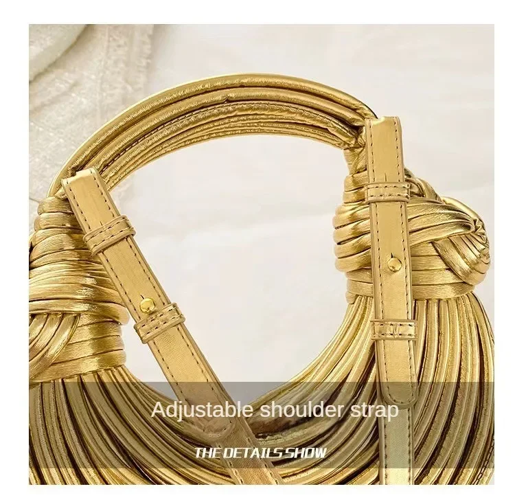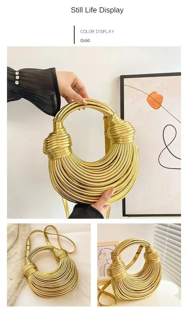 Weiyinxing for Women 2024 New in Gold Luxury Designer Brand Handwoven Noodle Bags Rope Knotted Pulled Hobo Silver Evening Clutch
