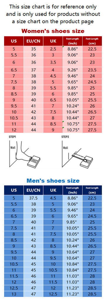 This shoe size is a standard size. When there is a product size chart on the product detail page, please use the product size chart.
