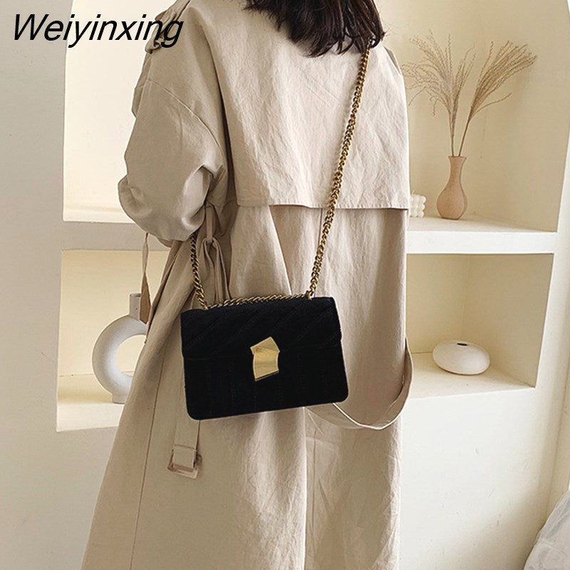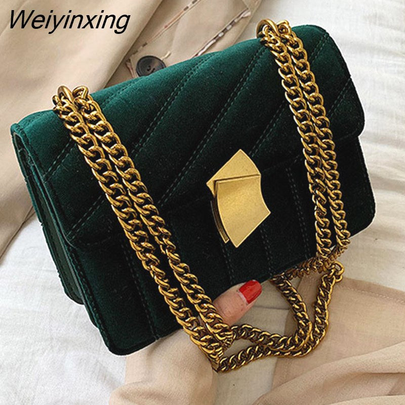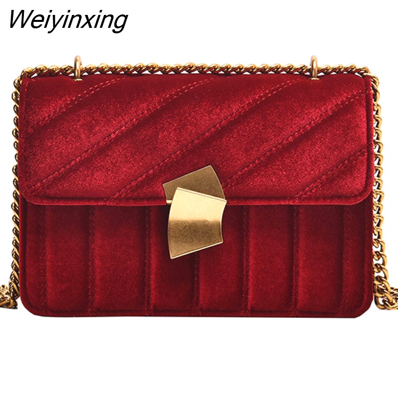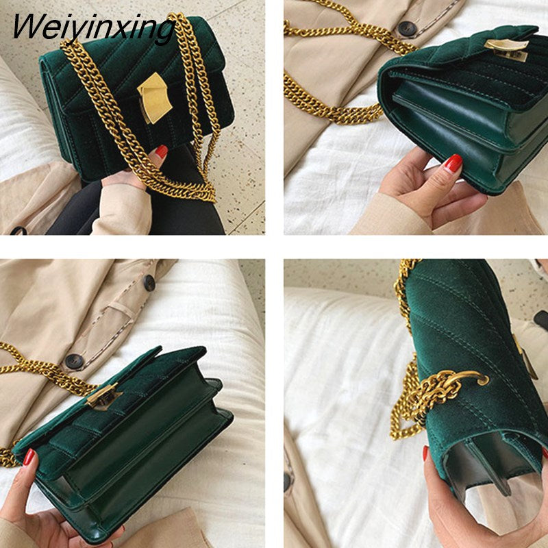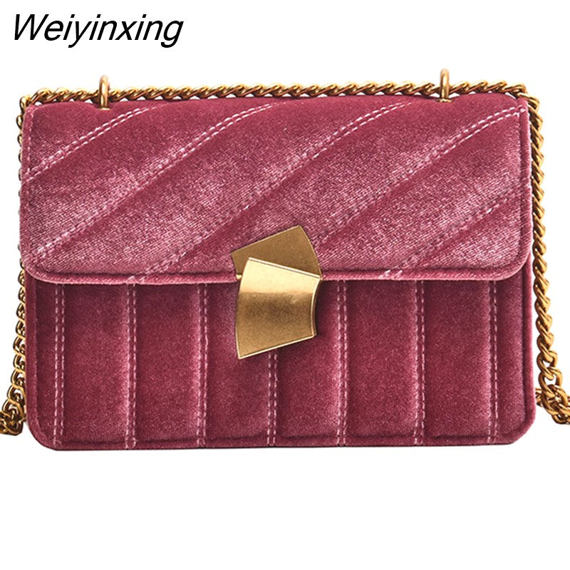 Weiyinxing Gold Velvet Crossbody Bags For Women 2023 Designer Small Shoulder Handbags Chain Messenger Bag Lady Mini Purses Hand Bag