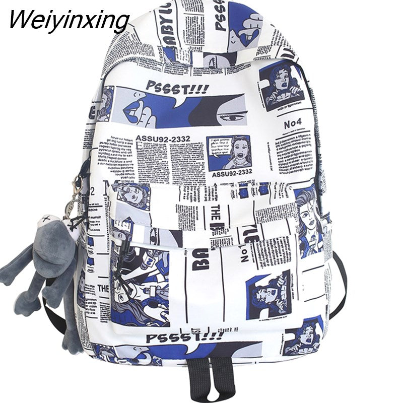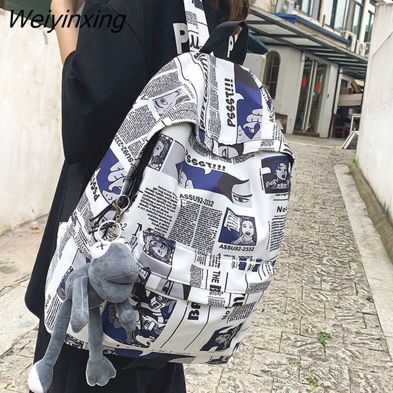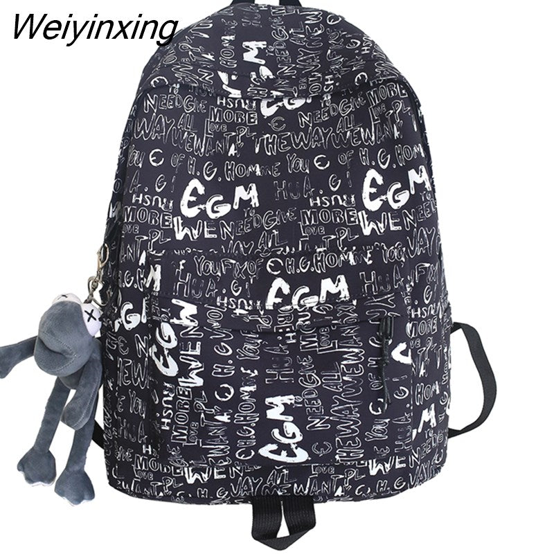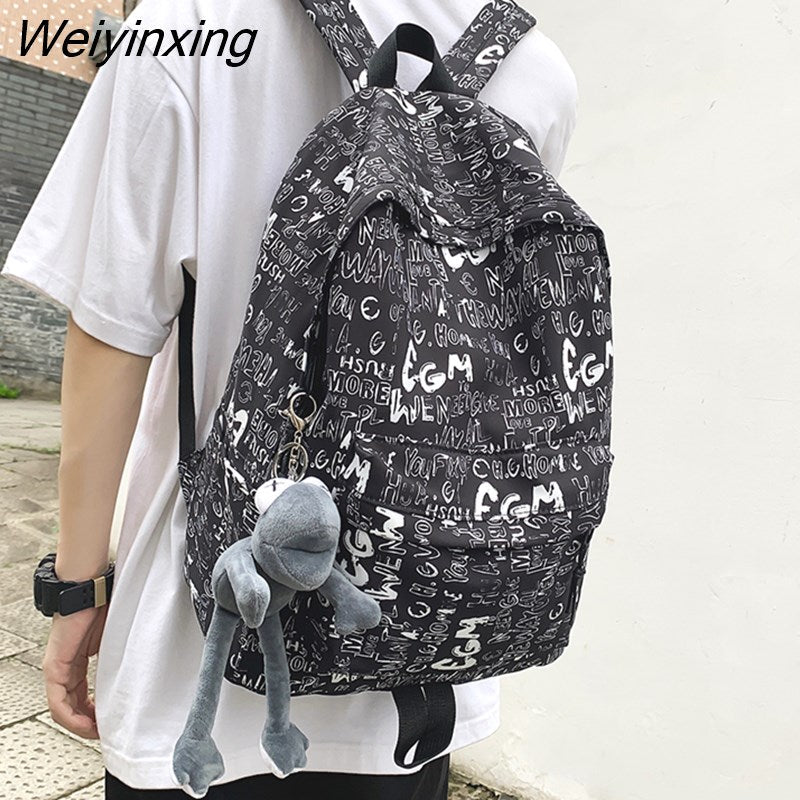 Weiyinxing Graffiti Print Men Backpack Harajuku Girl Student Male School Bag Ladies Fashion Laptop Nylon Backpack Women Book Boy Bag