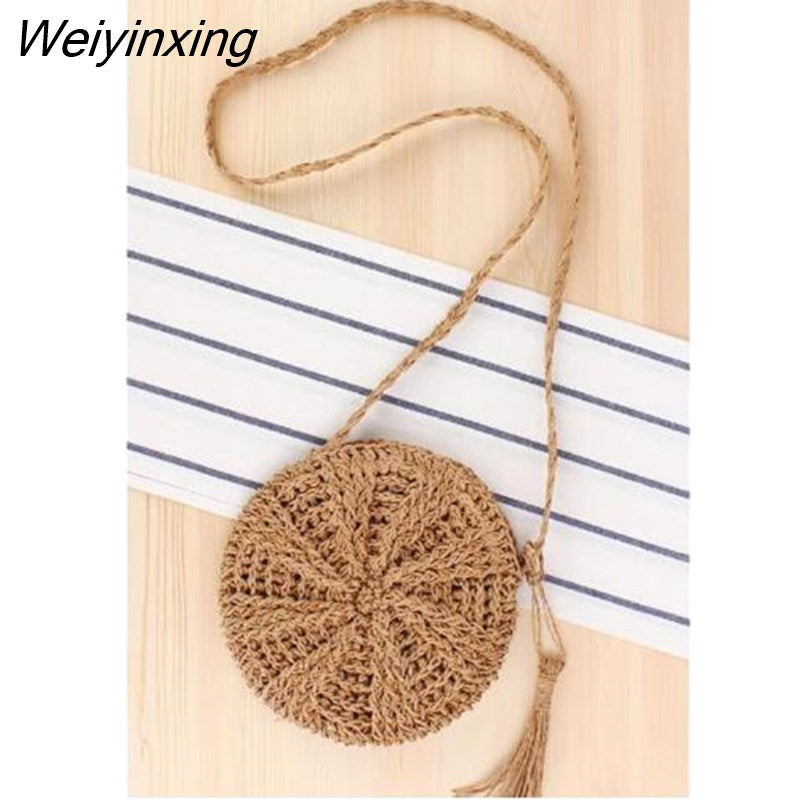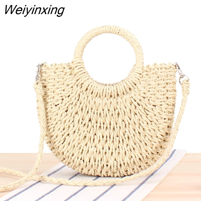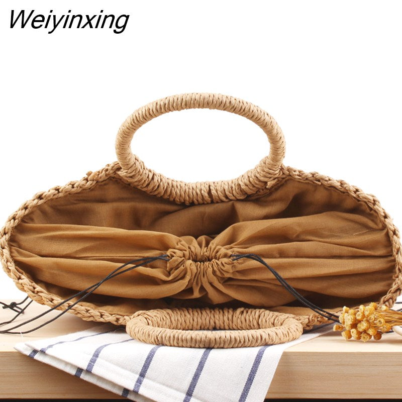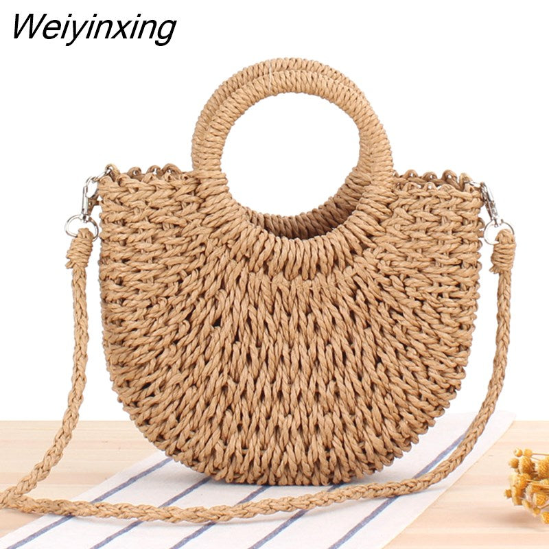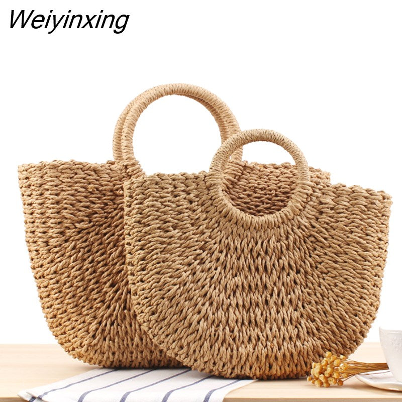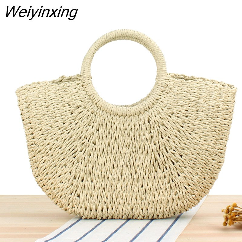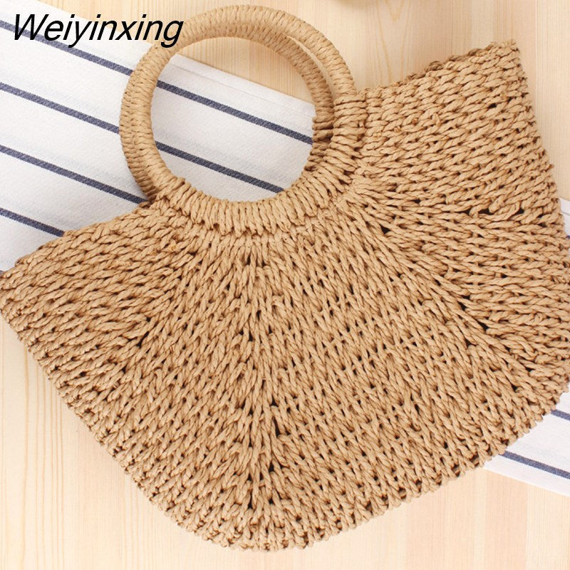 Weiyinxing Handmade Bags for Women Beach Weaving Ladies Straw Bag Wrapped Beach Bag Moon shaped Top Handle Handbags Totes