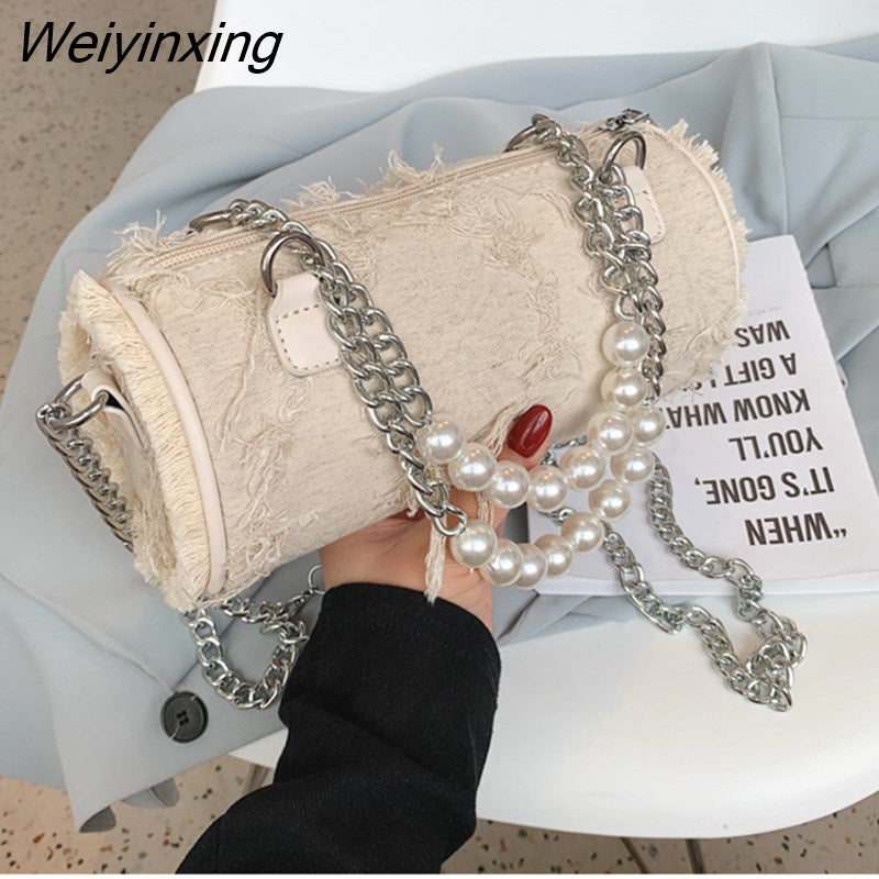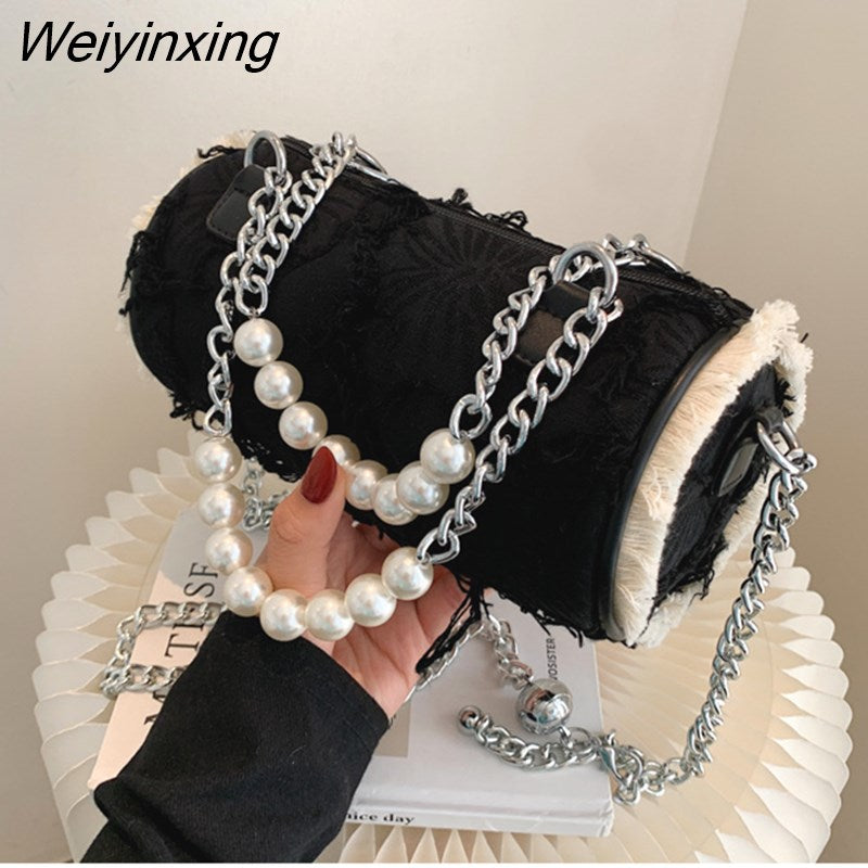 Weiyinxing High-quality Ladies Pearl Chain Shoulder Bag 2023 New Fashion Hand-held Handbag Hot-selling Messenger Hand Bag Cylinder Bag
