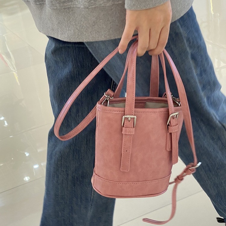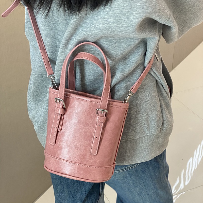 Weiyinxing Homemade Bag Women's 2024 New Spring Style Leisure Pink Handbill Shoulder Slung Bag Small Bucket Bag