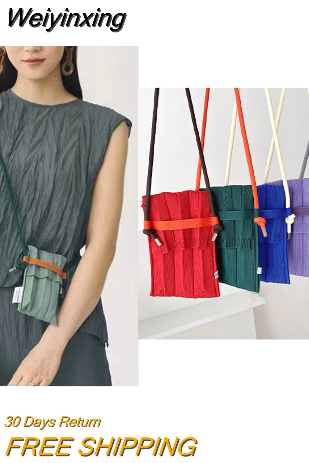 Weiyinxing Knitting Small Crossbody Bags Women Organ Pleated Mini Shoulder Messenger Bag Ladies Foldable Long Straps Phone Purse